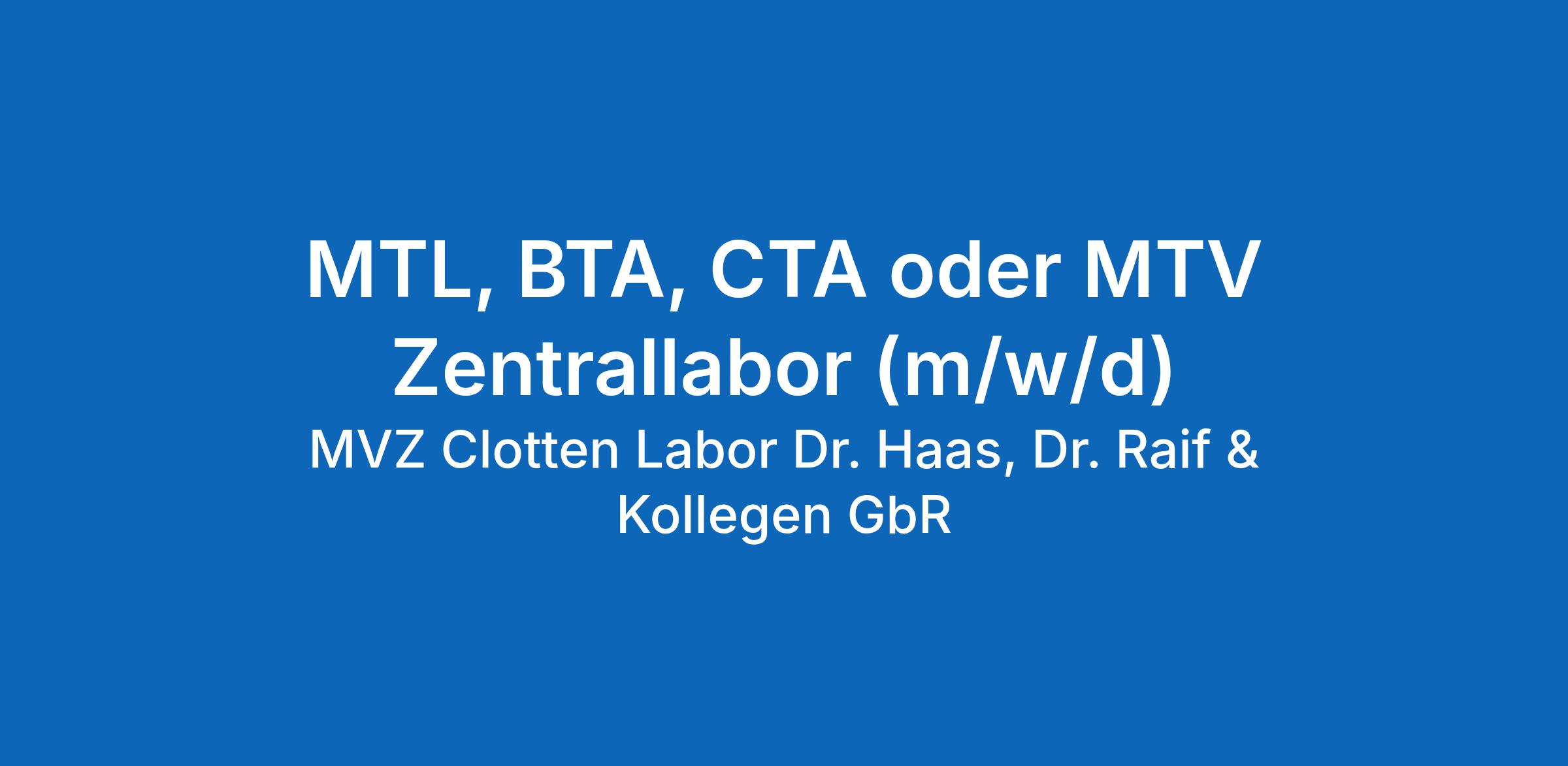 MTL, BTA, CTA oder MTV Zentrallabor (m/w/d)