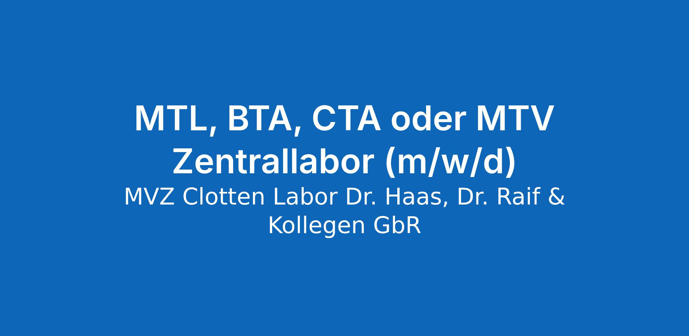 MTL, BTA, CTA oder MTV Zentrallabor (m/w/d)