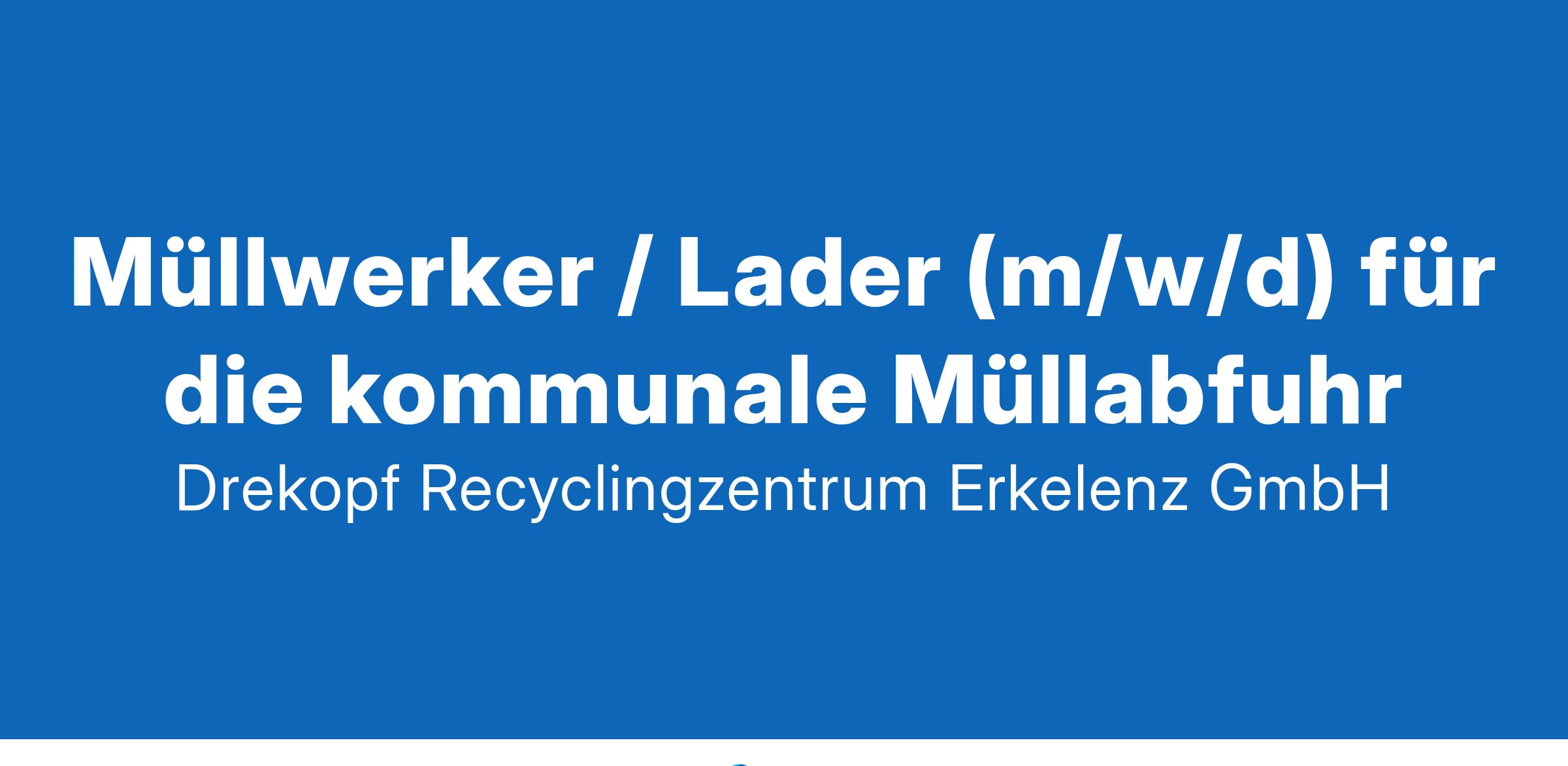 Die Drekopf-Gruppe ist ein erfolgreiches Entsorgungsunternehmen am linken Niederrhein. Wir kümmern uns um die sichere Entsorgung von Abfällen und Wertstoffen. Zur Verstärkung unseres Teams in Kreuzau suchen wir ab sofort: Müllwerker / Lader (m/w/d) für die kommunale Müllabfuhr in Vollzeit Auch Quereinsteiger haben bei uns eine Chance! Ihre Aufgaben: Leeren von Abfallsammelgefäßen und Sperrgut Unterstützung der LKW-Fahrer z.B. beim Rückwärtsfahren Ihr Profil: Bereitschaft zum Samstagsdienst Zuverlässigkeit, Einsatzbereitschaft, körperliche Belastbarkeit Teamfähigkeit und Freundlichkeit Führerschein Klasse B wünschenswert Wir bieten Ihnen: Krisensicheren und zukunftsorientierten Arbeitsplatz Intensive Einarbeitung wettbewerbsfähige Entlohnung Überdurchschnittliche Vermögenswirksame Leistungen Corporate Benefits Modernste Fahrzeugtechnik Arbeitskleidung inkl. Reinigungs- und Reparaturservice Arbeitsmedizinische Vorsorgeuntersuchungen Zusätzlicher Urlaub ist möglich Wertschätzendes Umfeld mit familiärem Teamklima Um Ihre Einsatzplanung kümmert sich ein motiviertes Team mit modernster Technik. Bitte senden Sie Ihre aussagekräftige Bewerbung bevorzugt per Mail an: Drekopf Recyclingzentrum Erkelenz GmbH z. Hd. Frau Katrin Gottschalk Ferdinand-Clasen-Str. 35 41812 Erkelenz E-Mail: bewerbungen-erkelenz@drekopf.de