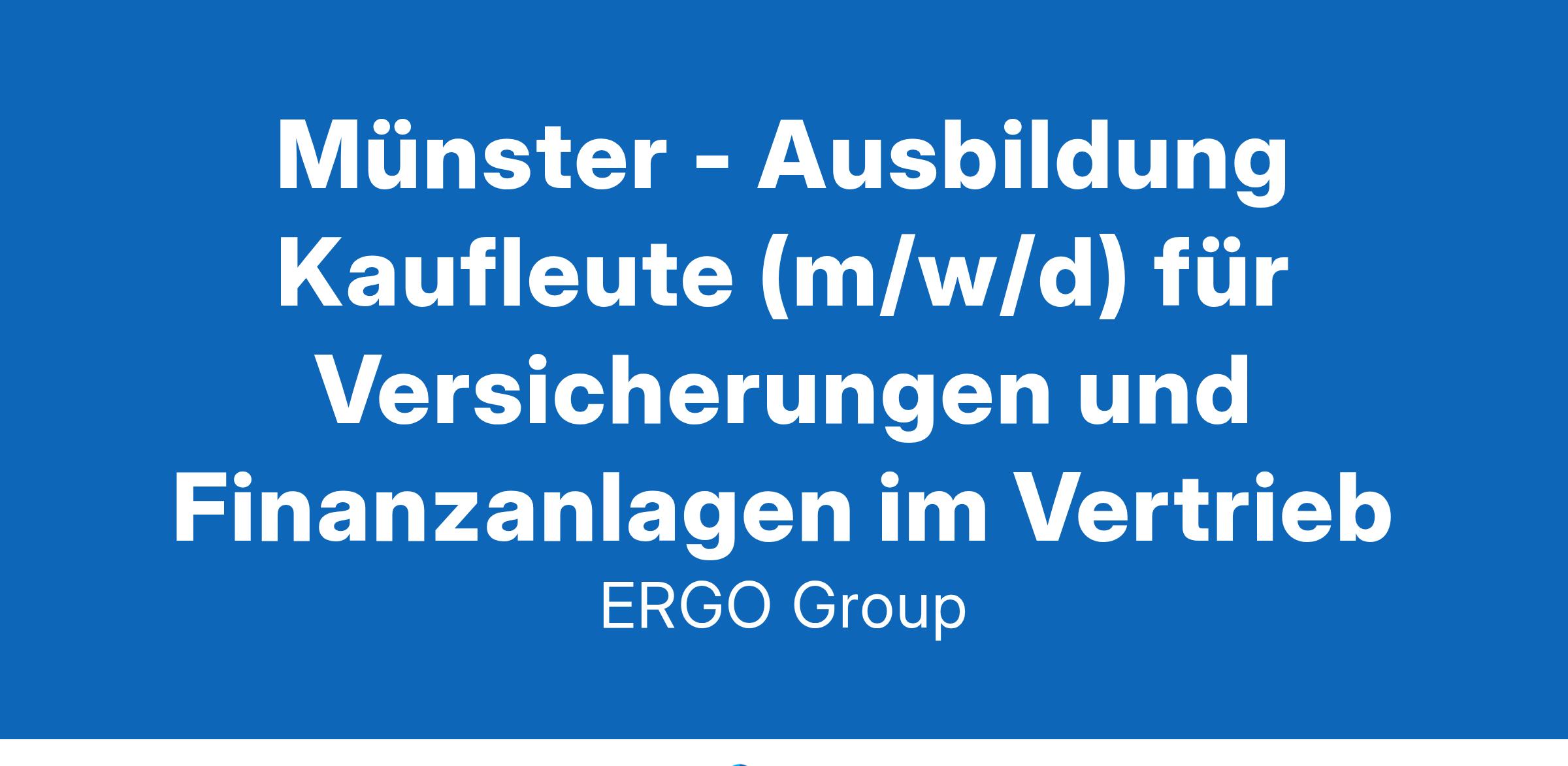 Münster - Ausbildung Kaufleute (m/w/d) für Versicherungen und Finanzanlagen im VertriebDu hast Spaß am Umgang mit Menschen? Du arbeitest gern eigenverantwortlich und gibst alles für Deine beruflichen Ziele? Bestens – wir suchen Dich! Komm zu ERGO und schaffe die Basis für eine aussichtsreiche Karriere.Menschen verstehen und gemeinsam Lösungen entwickeln