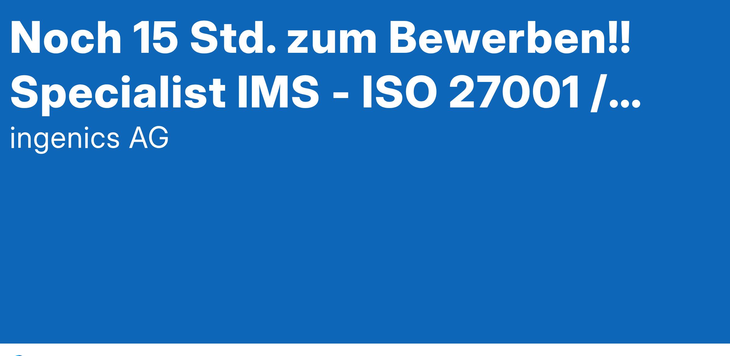 Noch 15 Std. zum Bewerben!! Specialist IMS - ISO 27001 / DSGVO / Informationssicherheit (m/w/d)