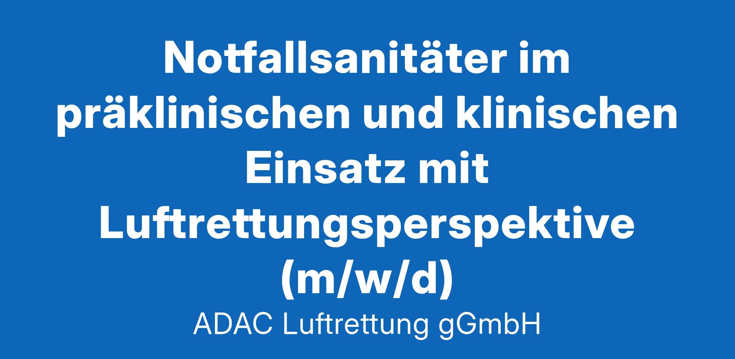 Notfallsanitäter im präklinischen und klinischen Einsatz in Aachen mit Luftrettungsperspektive (m/w/d)Wir helfen Menschen in der Not. Dafür sind wir jeden Tag im Einsatz - mit Herzblut, einem hohen Maß an Engagement und langjähriger Erfahrung. Als eine der größten Luftrettungsorganisationen Europas starten wir von 38 Stationen zu rund 54.000 Einsätzen im Jahr. Dazu steht unseren Crews, neben einer modernen Hubschrauberflotte, hochwertiges medizinisches Equipment zur Verfügung. Sowohl im Flugbetrieb, in der Medizin als auch bei Trainings und Fortbildungen sorgen wir für den höchstmöglichen Leistungsstandard. Mit unserem Engagement in diesen Bereichen verfolgen wir stets ein gemeinsames Ziel: Hilfe auf dem schnellsten Weg zum Patienten zu bringen und damit Leben zu retten.Deine AufgabenGeh die ersten Schritte für Deine Karriere in der Luftrettung! Du brennst für die Notfallmedizin und träumst davon, als Bestandteil einer unserer Crews Leben zu retten? Beginne Deine Reise in der Telenotarztregion Aachen und sammele wertvolle Erfahrungen an den Schnittstellen in der präklinischen und klinischen Patientenversorgung. Ergreife die Chance, persönlich und fachlich zu wachsen. Bei Deiner Entwicklung profitierst Du von unseren Mentoren, professionellen Teams, moderner Ausstattung und Qualifizierungen. Wir freuen uns auf Deine Bewerbung!