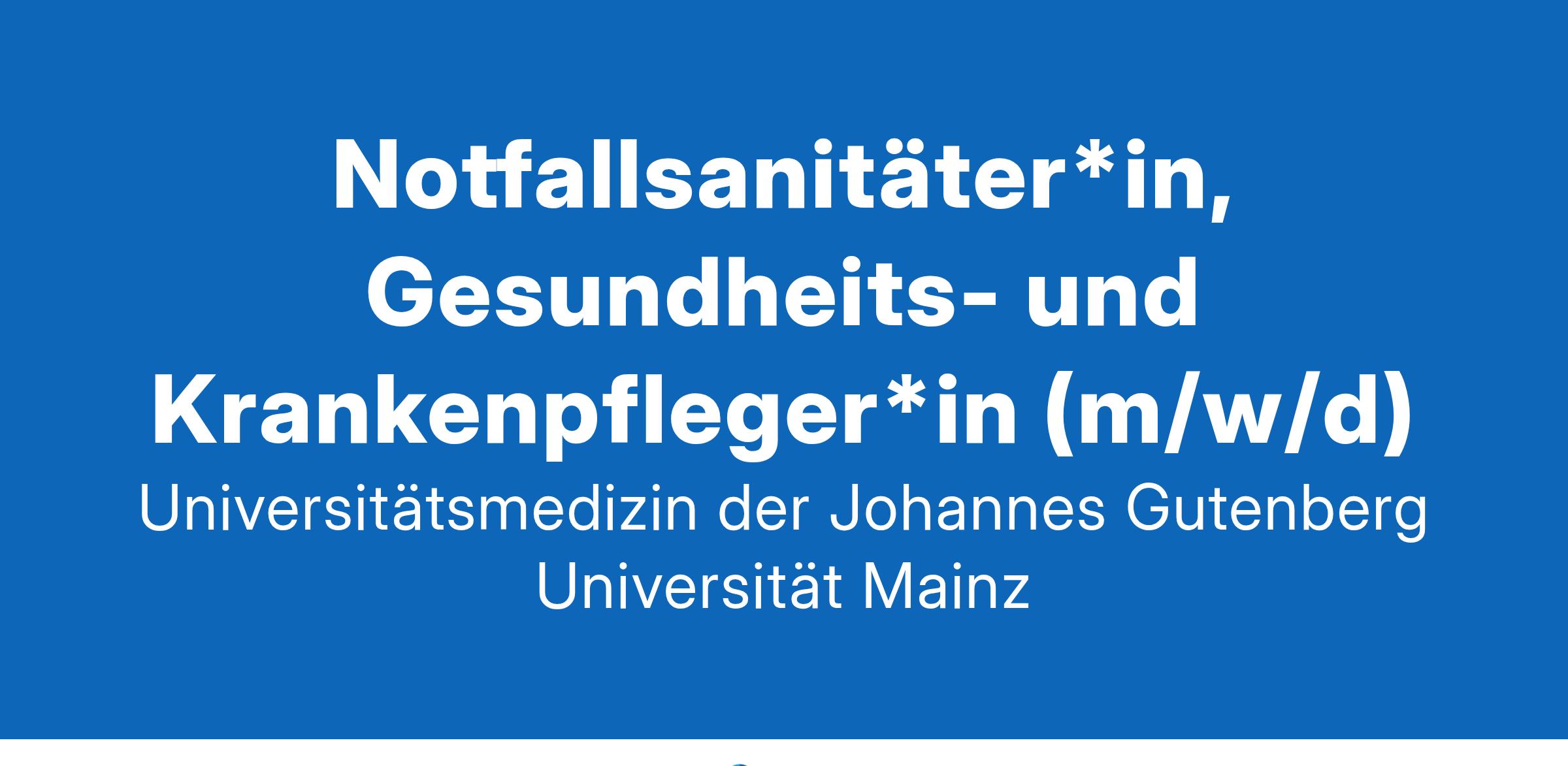 www.unimedizin-mainz.de Bei entsprechender Eignung werden schwerbehinderte Bewerber*innen (m/w/d) bevorzugt berücksichtigt.Onlinebewerbung