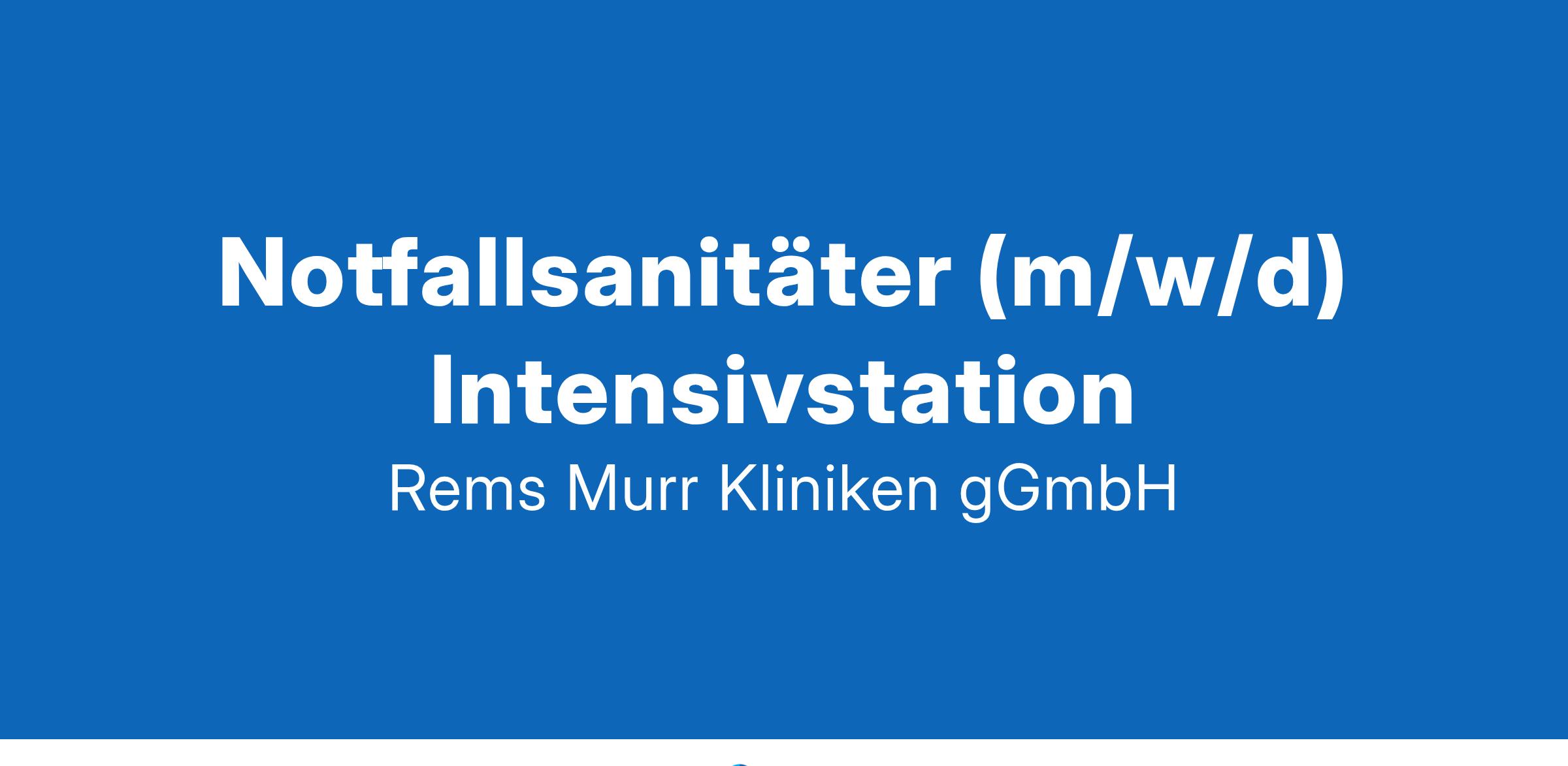 INTENSION: INTENSIVWir suchen zum nächstmöglichen Zeitpunkt in Vollzeit oder Teilzeit (mind. 80 %) für unser Klinikum Winnenden einenNotfallsanitäter (m/w/d) Intensivstationfür unsere Interdisziplinäre Intensivstation und den IMC-BereichReferenznummer: W-1-312-24Mit dem Rems-Murr-Klinikum Winnenden und der Rems-Murr-Klinik Schorndorf leisten wir eine qualifizierte Zentral- und Regelversorgung für die Menschen im Rems-Murr-Kreis und darüber hinaus. In 21 Fachkliniken mit insgesamt 915 Planbetten werden jährlich rund 51.000 Patientinnen und Patienten von 2800 Mitarbeitenden stationär versorgt.