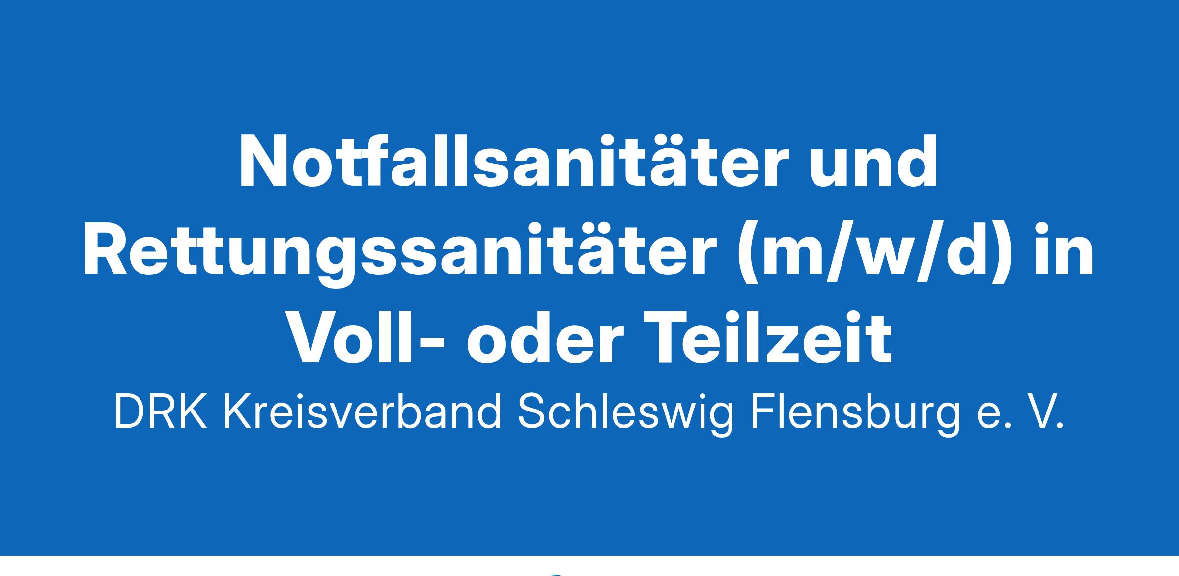 DRK-Kreisverband Schleswig-Flensburg e.V. Wir suchen Notfallsanitäter und Rettungssanitäter (m/w/d) in Voll- oder Teilzeit zum nächstmöglichen Zeitpunkt für alle Rettungswachen in Kreis SL-FL Der DRK-Kreisverband Schleswig-Flensburg e.V. ist seit Jahrzehnten größter und fortan alleiniger beantragter Durchführer im Rettungsdienst des Landkreises Schleswig-Flensburg mit derzeit rund 200 Mitarbeitenden. Wir bieten Ihnen: Strikte Trennung von Krankentransport und Notfallrettung Eine attraktive Vergütung Nacht-, Sonn- und Feiertagszuschläge Fahrradleasing Betriebliche Altersvorsorge Attraktive Jahresfortbildungen auf hohem Niveau Antrittsprämie bei Schichtübernahme aus geplantem "Frei" Pausenregelung mit Ansammlung von zusätzlichen freien Tagen Ihre Aufgaben: Versorgung von Notfallpatienten Herstellung und Sicherung der Vitalfunktionen von Patienten Assistenz bei den vom behandelnden Arzt durchzuführenden ärztlichen Maßnahmen, ggf. auch die eigenverantwortliche Durchführung ärztlicher Maßnahmen im Rahmen der sogenannten Notfallkompetenz Durchführung von Krankentransportfahrten. Ihr Profil: Eine erfolgreich abgeschlossene Ausbildung als Notfallsanitäter*in, Rettungsassistent*in oder Rettungssanitäter*in (m/w/d) Als Rettungssanitäter*in Einsatzerfahrung gem. § 2 Abs.7 des SHRDG Besitz der Fahrerlaubnis Klasse C1 Ihre motivierte und teamorientierte Mitarbeit Fühlen Sie sich angesprochen? Justin Haarig Deutsches Rotes Kreuz Kreisverband Schleswig-Flensburg e.V. Lise-Meitner-Straße 9 24837 Schleswig E-Mail: Bewerbung@drk-sl-fl.de Telefon: 04621 819-47 WhatsApp: 01512 2668362 Möchten Sie Teil unserer DRK-Familie werden? Dann freuen wir uns auf Ihre Bewerbung - gern per E-Mail
