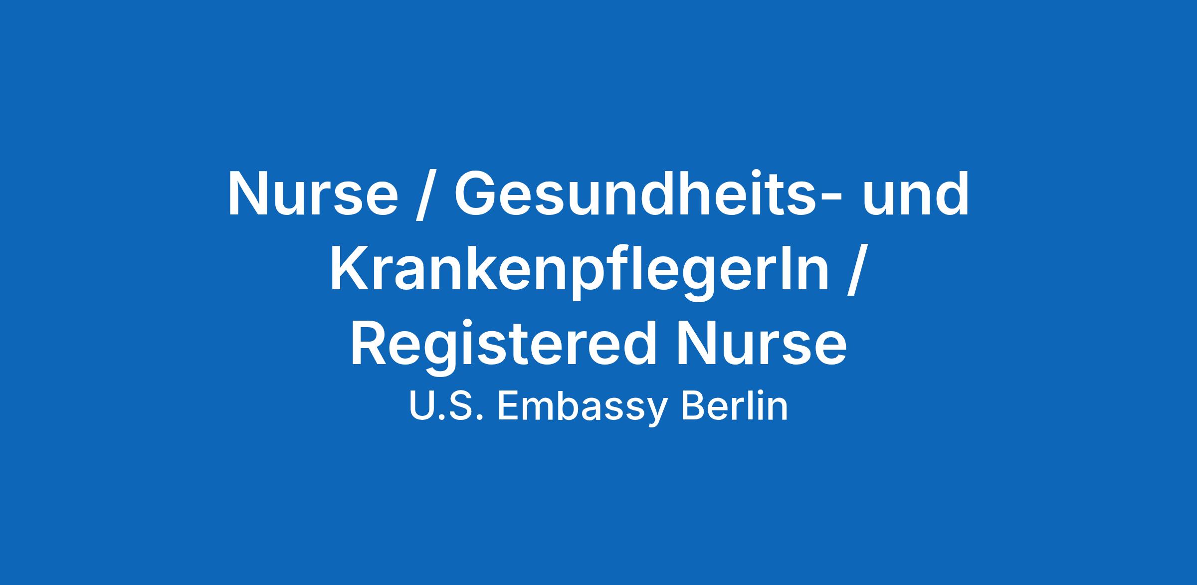 Die US-Botschaft in Berlin sucht geeignete und qualifizierte Bewerber für die Position als Nurse / Gesundheits- und KrankenpflegerIn [offizieller Titel: Registered Nurse].