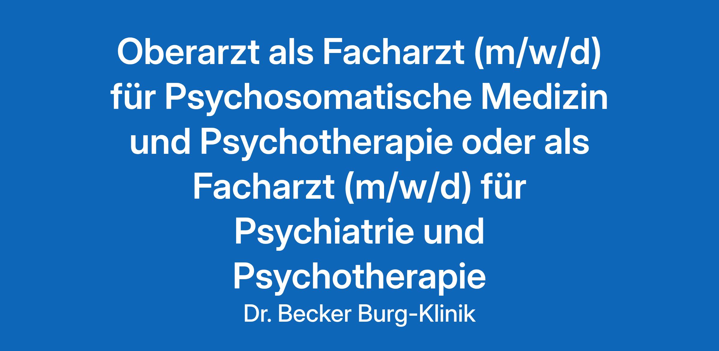 Oberarzt als Facharzt (m/w/d) für Psychosomatische Medizin und Psychotherapie oder als Facharzt (m/w/d) für Psychiatrie und Psychotherapie