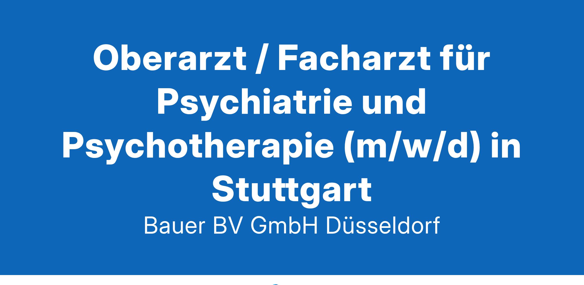 Beschäftigungsbeginn: Jetzt bewerbenIhr neuer Arbeitsplatz:Die rennomierte Einrichtung in der Region Stuttgart betreut psychische beeinträchtigte Menschen mit einem ganzheitliches Angebot, von klinischer und ambulanter Behandlung über Rehabilitation bis zum betreuten Wohnen. Zum Ausbau und Weiterentwicklung der Psychiatrischen Institutsambulanz (PIA) suchen wir einen Fach- oder Oberarzt (m/w/d).Ihre Vorteile:Abwechslungsreiche und verantwortungsvolle TätigkeitBehandlung und Versorgung der Patienten im ambulanten BereichEinzelpsychotherapeutische Behandlungsführung und PsychopharmakotherapieAktive Weiterentwicklung der EinrichtungFreundliches und engagiertes TeamUmfangreiche Qualifizierungs-/ FortbildungsangeboteAttraktive VergütungUnbefristete Festanstellung in Voll- oder TeilzeitIhr Profil:Facharzt für Psychiatrie und Psychotherapie (m/w/d)Fundierte Kenntnisse im FachbereichEngagement und psychotherapeutische MotivationIhr Ansprechpartner:Bauer B+V Personalberatung