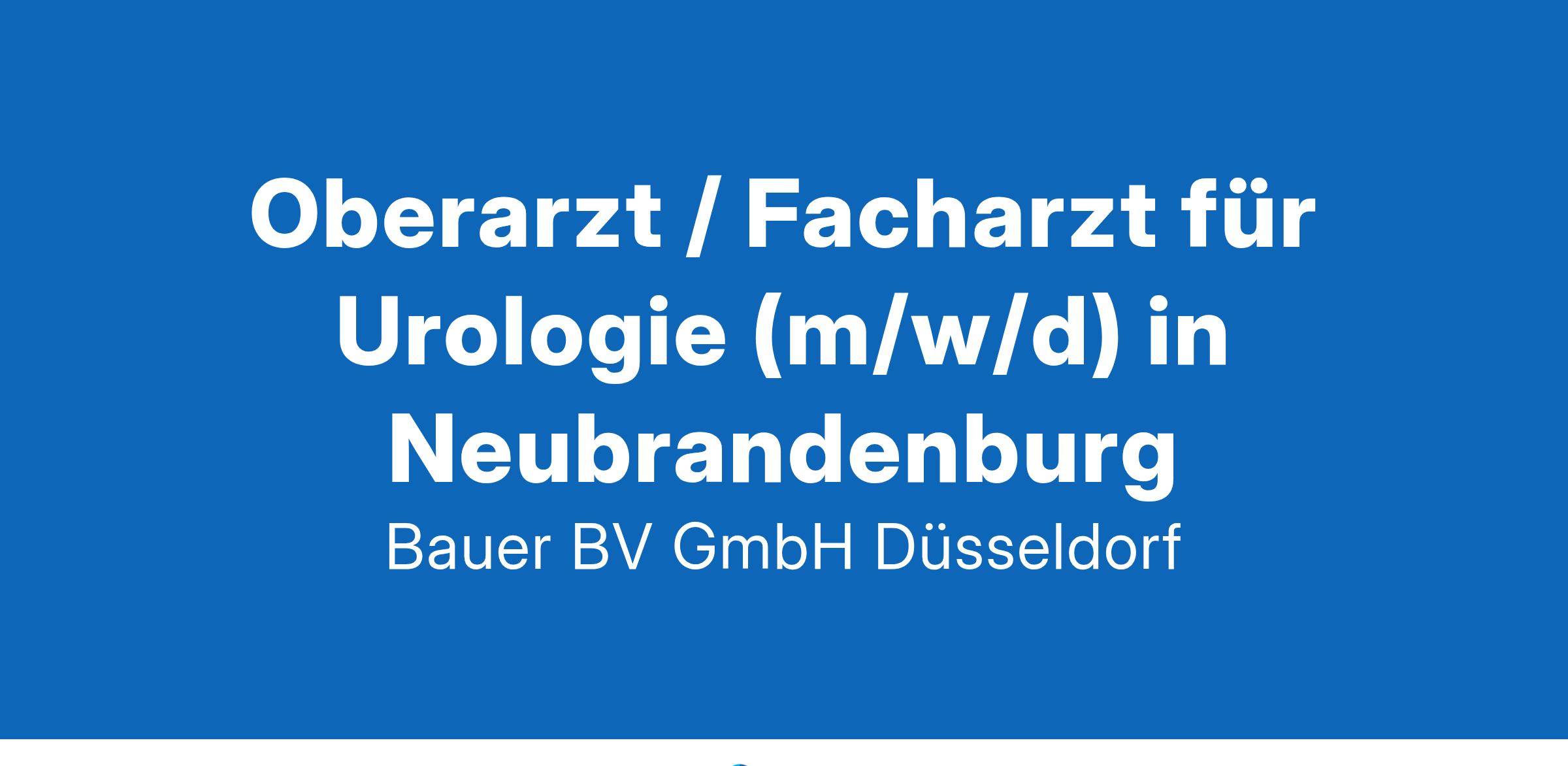 Standort: Neubrandenburg, MecklenburgIhr neuer Arbeitsplatz:Krankenhaus der Grund- und Regelversorgung sowie akademisches Lehrkrankenhaus mit etwa 400 Betten im Raum Neubrandenburg. Die Klinik für Urologie deckt das gesamte Spektrum des Fachgebiets ab, einschließlich minimalinvasiver Verfahren sowie konservativer und operativer Tumortherapien. Zur weiteren Verstärkung und zum Ausbau der Klinik suchen wir einen engagierten Oberarzt für Urologie (m/w/d) oder einen Facharzt für Urologie (m/w/d).Ihre Vorteile:Zukunftsorientierte Klinik in attraktiver LageAbwechslungsreicher Arbeitsplatz mit GestaltungsspielraumMöglichkeiten der WeiterentwicklungWeiterbildung Medikamentöse TumortherapieFreundliches und engagiertes TeamUnterstützung und Förderung von WeiterbildungenAttraktive VergütungUnbefristete Festanstellung mit langfristiger PerspektiveIhr Profil:Facharzt (m/w/d) für UrologieGerne Zusatzbezeichnung Medikamentöse TumortherapieFundierte Kenntnisse im FachbereichIhr Ansprechpartner:Bauer B+V Personalberatung