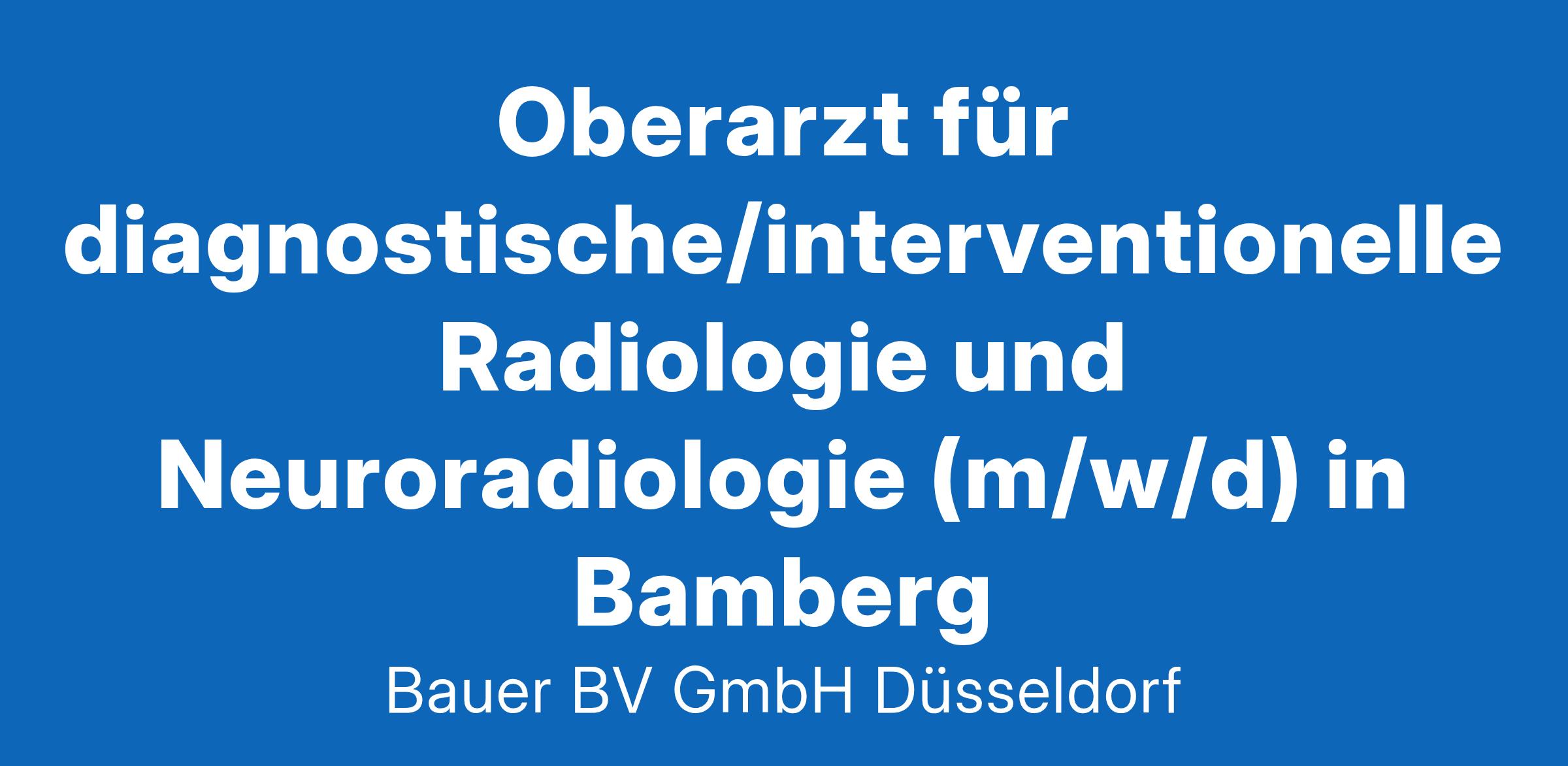 Anstellungsart(en): VollzeitIhr neuer Arbeitsplatz:Akademisches Lehrkrankenhaus mit knapp 600 Betten in der Region Bamberg. Die Klinik für Diagnostische, Interventionelle Radiologie und Neuroradiologie ist voll digitalisierte und führt alle diagnostischen und interventionellen Verfahren zentral durch.Ihre Vorteile:Moderner Arbeitsplatz mit entspr. AusstattungMRT (1,5 und 3 Tesla) und MDCT (64 und 128 Zeilen)DSA (Flachdetektor mit Cone Beam-CT)Digitales RöntgenDigitale Mammographie mit StereotaxieVerantwortungsvolle TätigkeitenMitarbeit in interventioneller Radiologie (vaskulär und nonvaskulär)Schnittbilddiagnostik stationär und ambulant (MVZ)Einarbeitung in mechanische Thrombektomie bei InteresseSupervision der AssistenzärzteFreundliches und engagiertes Team (2-5-10)Inner- und außerbetriebliche Fort- und WeiterbildungsmöglichkeitenAttraktive VergütungUnbefristete Festanstellung in Voll- oder TeilzeitIhr Profil:Facharzt (m/w/d) für RadiologieFundierte Kenntnisse inSchnittbildverfahrenKonventioneller RöntgendiagnostikInterventionelle Erfahrung oder das Interesse, dies zu erlernenEngagement und TeamfähigkeitIhr Ansprechpartner:Bauer B+V Personalberatung