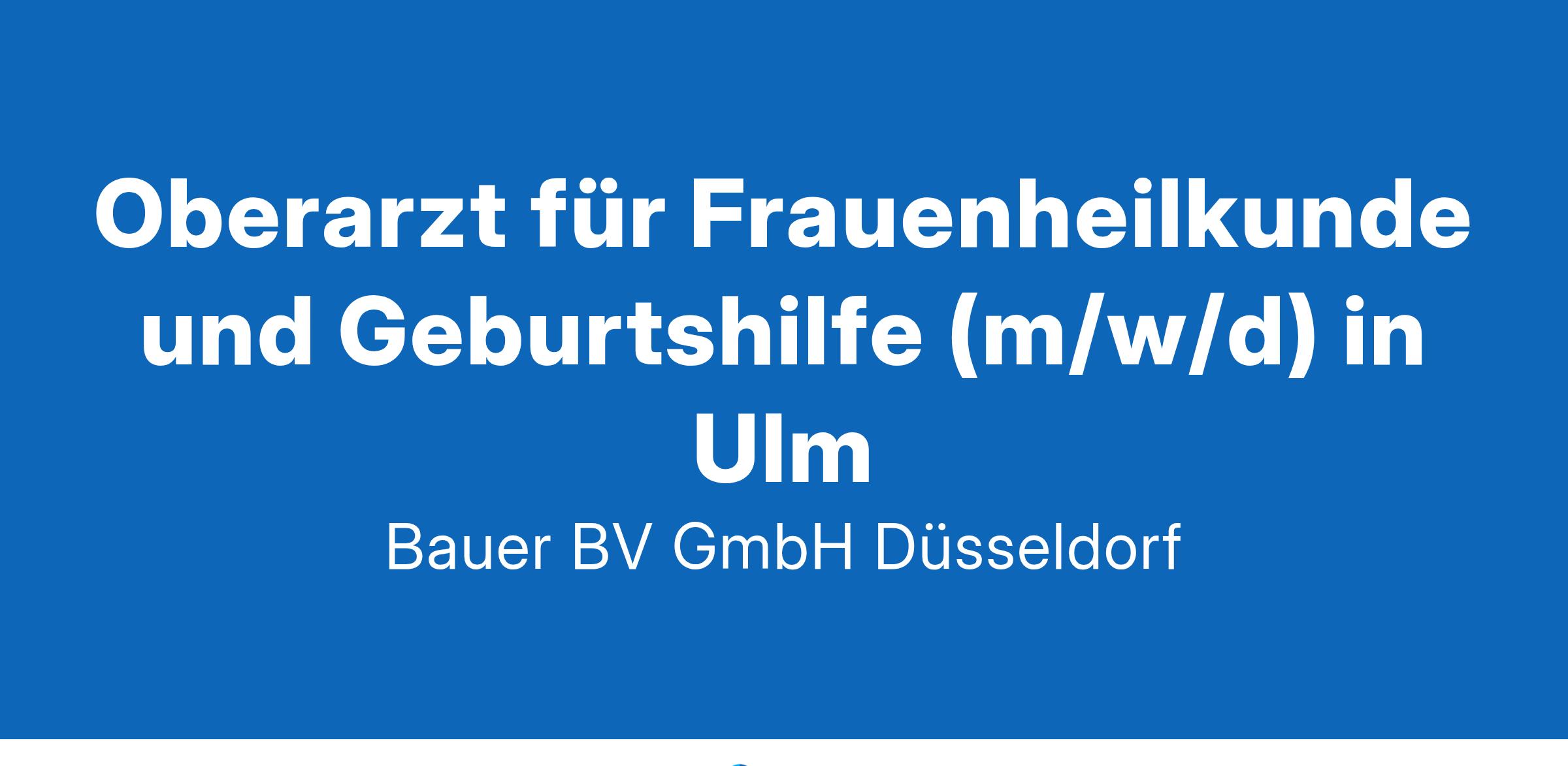 Oberarzt für Frauenheilkunde und Geburtshilfe (m/w/d)Standort: Ulm (Donau)