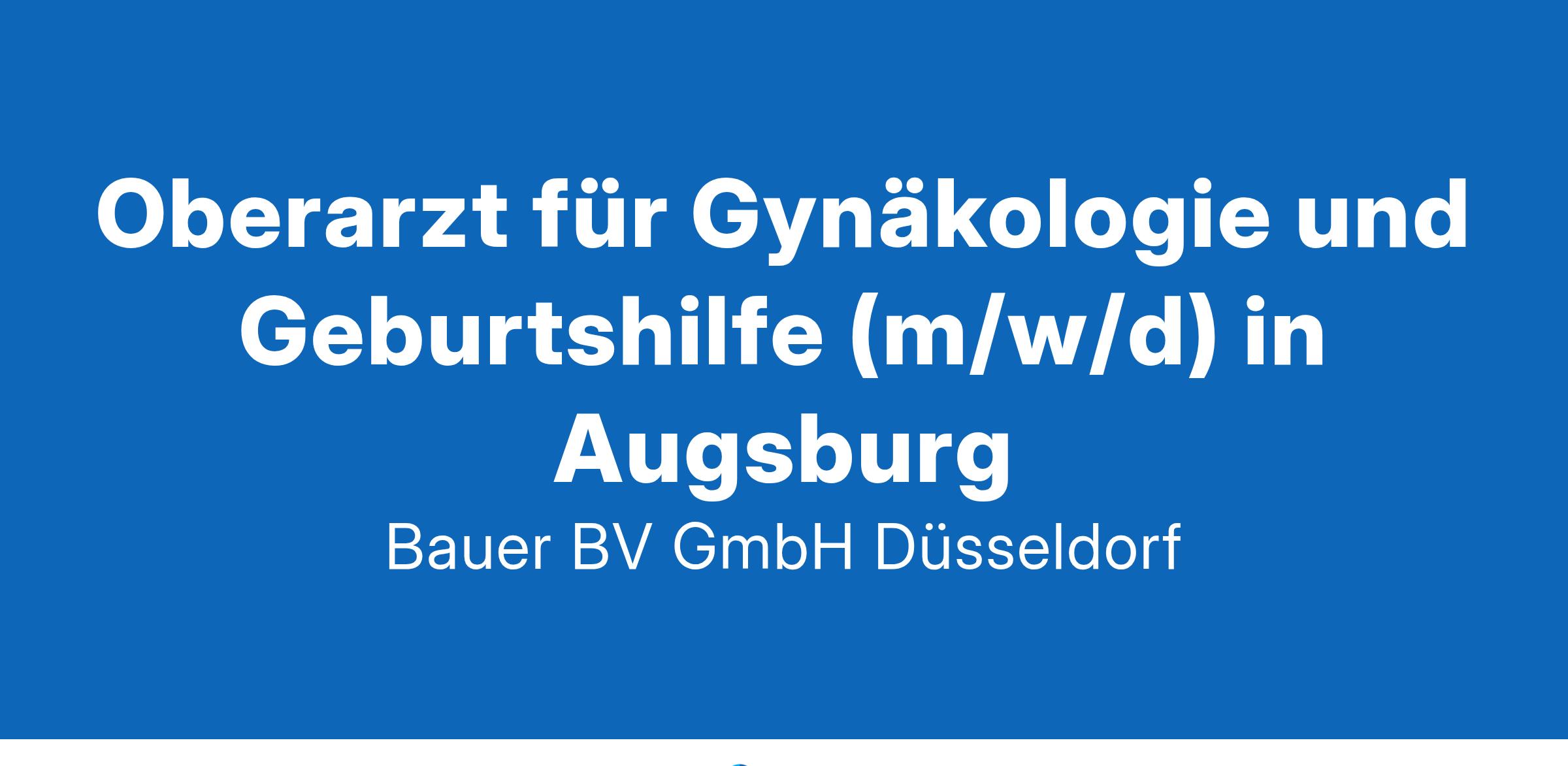 Anstellungsart(en): VollzeitIhr neuer Arbeitsplatz:Akademisches Lehrkrankenhaus mit rund 400 Betten im Raum Augsburg. Zum Neuaufbau der Klinik für Gynäkologie und Geburtshilfe wird ein erfahrener Oberarzt (m/w/d) gesucht. Die Klinik umfasst im gynäkologischen Spektrum eine Vielzahl von minimalinvasiven Operationsverfahren, Beckenbodenchirurgie, operative Reproduktionsmedizin, Senologie und gynäkologische Onkologie. Jährlich kommen rund 1.000 Kinder zur Welt.Ihre Vorteile:Vielseitiges AufgabenspektrumLangfristige Perspektive und EntwicklungsmöglichkeitenModerne apparative AusstattungArbeitsklima mit flacher HierarchieAttraktive Vergütung sowie zusätzliche LeistungenUnbefristete AnstellungIhr Profil:Facharzt (m/w/d) für Gynäkologie und GeburtshilfeSchwerpunkt in der operativen Gynäkologie und minimalinvasiven OperationstechnikenErfahrung in der GeburtshilfeMehrjährige klinische ErfahrungIhr Ansprechpartner:Bauer B+V Personalberatung