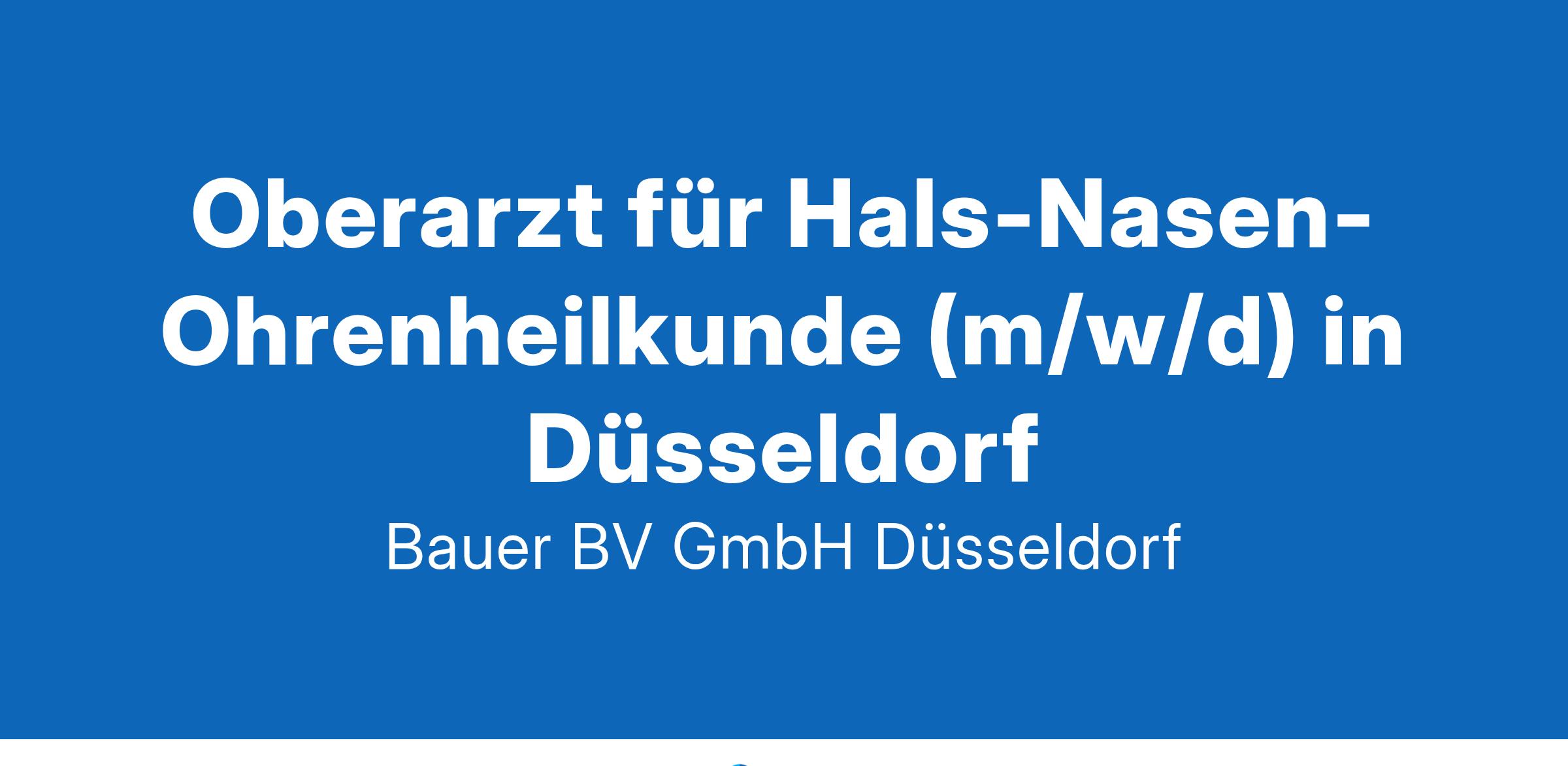 Anstellungsart(en): VollzeitIhr neuer Arbeitsplatz:Akademisches Lehrkrankenhaus der Maximalversorgung mit 800 Betten im Raum Düsseldorf. Die Klinik für Hals-Nasen-Ohrenheilkunde verfügt über 45 Betten mit eigenem Funktions- und OP-Bereich und betreut das gesamte Spektrum der konservativen und insbesondere operativen Hals-Nasen-Ohren-Heilkunde.Ihre Vorteile:Moderne Klinik in attraktiver LageAbwechslungsreiche und verantwortungsvolle TätigkeitFreundliches und engagiertes TeamViele WeiterbildungsmöglichkeitenAttraktive VergütungUnbefristete Festanstellung mit PerspektiveIhr Profil:Facharzt (m/w/d) für Hals-Nasen-OhrenheilkundeFundierte Kenntnisse im Fachbereich (operative & konservativ)Engagement und TeamfähigkeitIhr Ansprechpartner:Bauer B+V Personalberatung