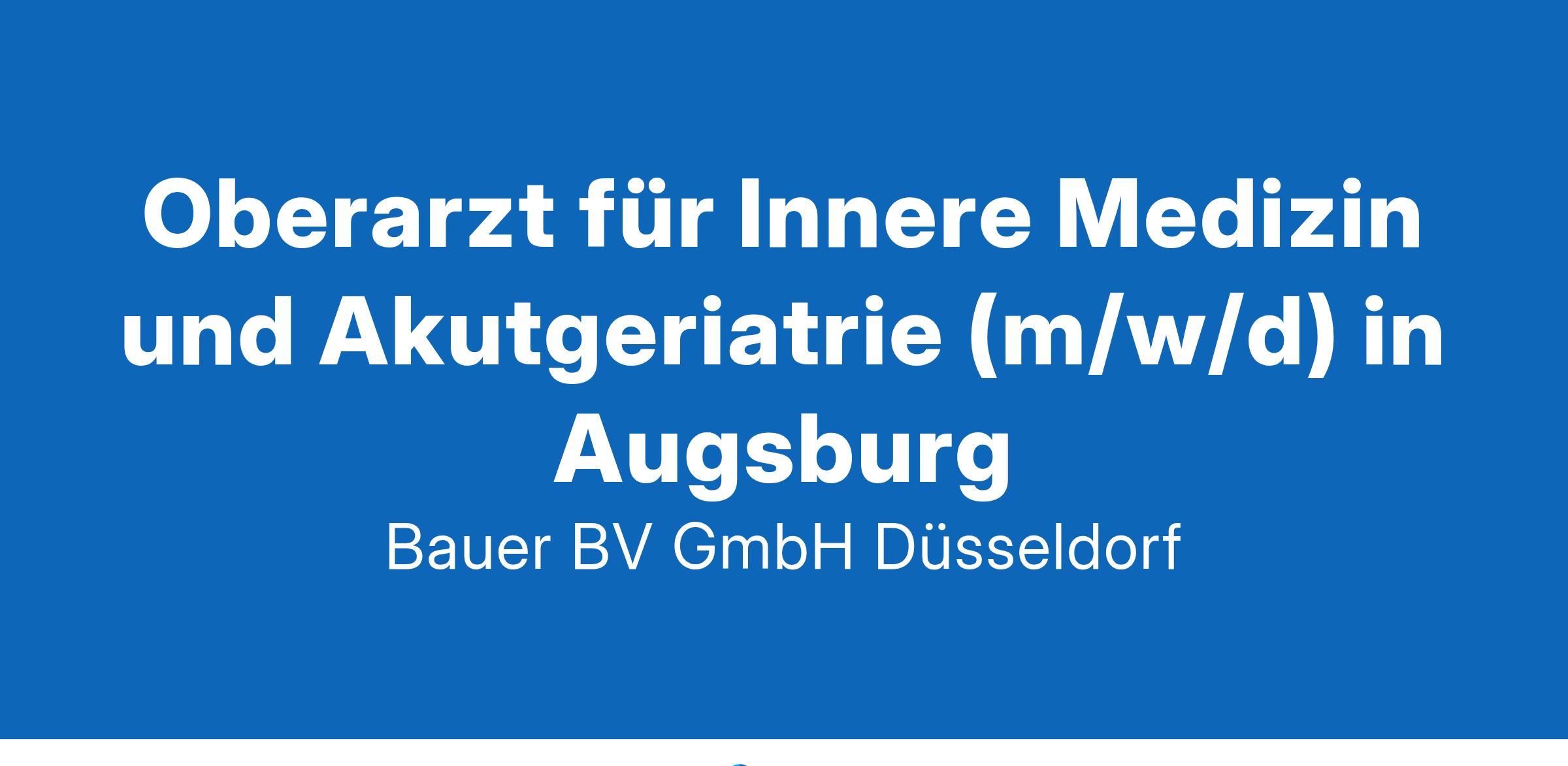 Anstellungsart(en): Teilzeit, VollzeitIhr neuer Arbeitsplatz:Akutkrankenhaus der Grund- und Regelversorgung in kommunaler Trägerschaft mit 250 Betten in der Region Augsburg. Jährlich werden knapp 15.000 Patienten stationär und 25.000 Patienten ambulant behandelt.Die geriatrische Klinik mit ihrem multidisziplinären Team fokussiert sich auf die Diagnostik und Therapie schwerwiegender akuter Erkrankungen oder der Verschlechterung chronischer Erkrankungen. Ergänzt wird das Angebot durch Frührehabilitation, um die Selbständigkeit der Patienten zu erhalten oder wiederherzustellen.Ihr Vorteil:Moderne KlinikAbwechslungsreiches AufgabengebietStationäre Versorgung der geriatrischen PatientenMitgestaltung und Weiterentwicklung er AbteilungUnterstützung bei der fachübergreifenden FrührehabilitationLangfristige Perspektive und EntwicklungsmöglichkeitenHochmotiviertes, qualifiziertes und engagiertes TeamFlexible ArbeitszeitmodelleAttraktive VergütungUnbefristete FestanstellungIhr Profil:Facharzt für Innere Medizin (m/w/d)Zusatzbezeichnung GeriatrieBreite internistische ErfahrungEngagement und EmpathieIhr Ansprechpartner:Bauer B+V Personalberatung
