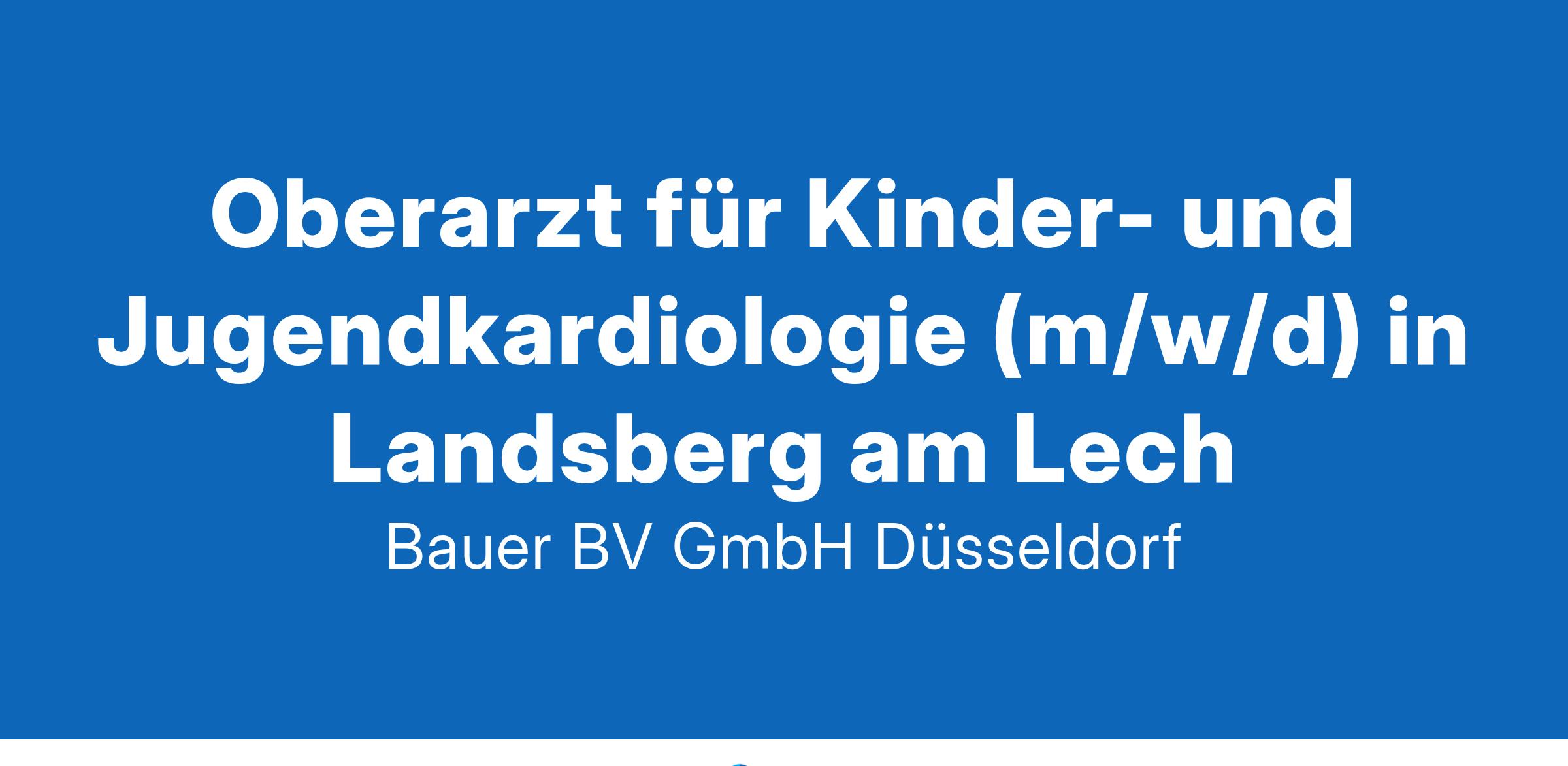 Anstellungsart(en): VollzeitIhr neuer Arbeitsplatz:Akademisches Lehrkrankenhaus mit rund 350 Betten im raum Landsberg am Lech. Die Klinik für Kinder- und Jugendkardiologie verfügt über Langzeit-EKG, -RR, Spiroergometrie sowie eine umfassende Echokardiographieausstattung. Es besteht neben einer täglichen kinderkardiologischen Spezialsprechstunde und einem stationären Schwerpunkt ein Kooperationsvertrag und sehr enge Zusammenarbeit mit dem Deutschen Herzzentrum München.Ihre Vorteile:Attraktiver und verantwortungsvoller ArbeitsplatzPersönliche und fachliche WeiterentwicklungFreundliches und engagiertes TeamAttraktive VergütungUnterstützung und Förderung von WeiterbildungenUnbefristete FestanstellungIhr Profil:Facharzt (m/w/d) für Kinder- und JugendmedizinWeiterbildung im Schwerpunkt Kinder- und JugendkardiologieEngagement und TeamfähigkeitIhr Ansprechpartner:Bauer B+V Personalberatung