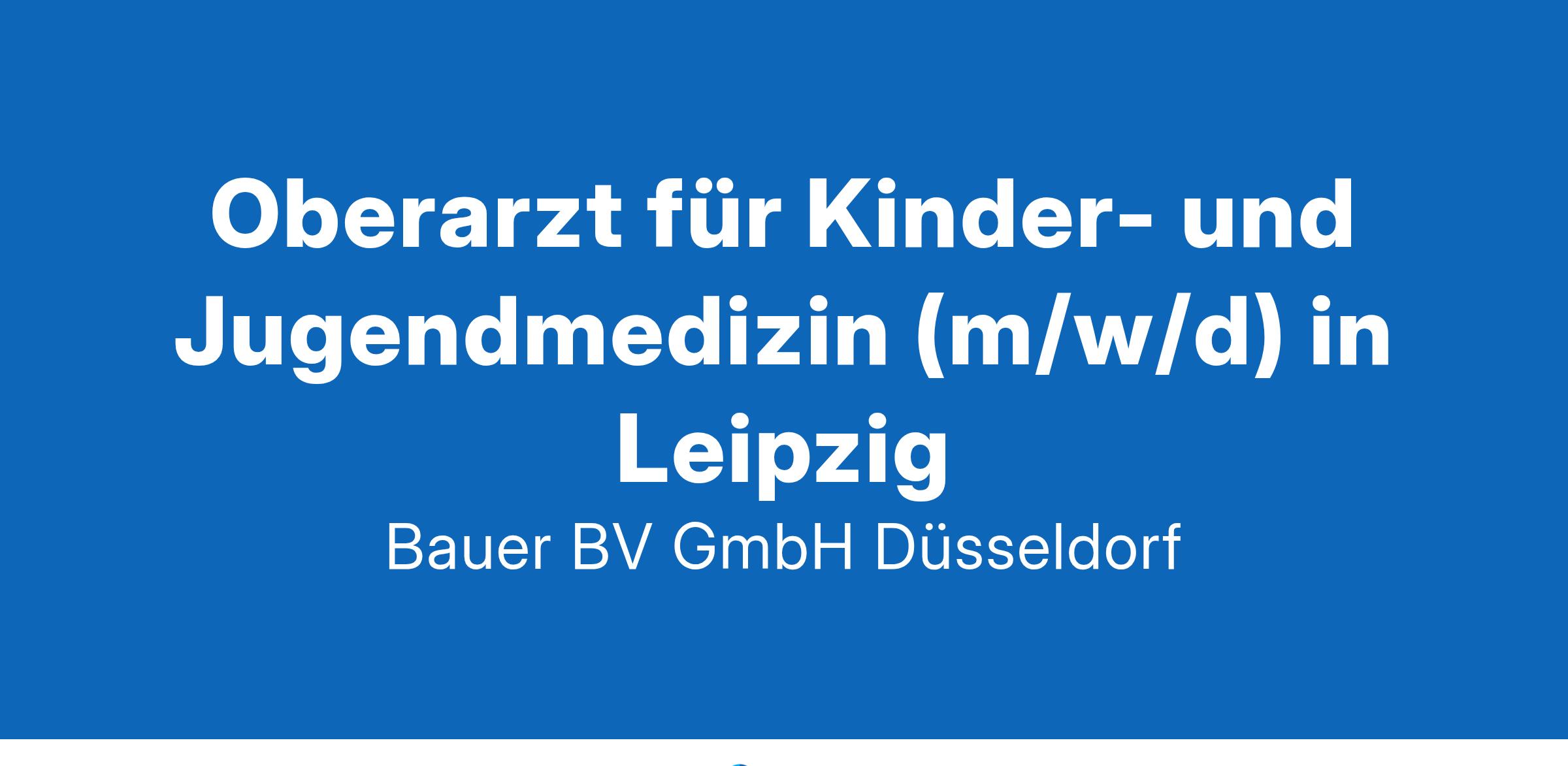 Anstellungsart(en): VollzeitIhr neuer Arbeitsplatz:Akutkrankenhaus der Regelversorgung mit rund 300 Betten im Raum Leipzig. Die Klinik für Kinder- und Jugendmedizin mit perinatalem Schwerpunkt (Versorgungsstufe 3) behandelt auf rund 32 Betten das gesamte Spektrum des Fachbereiches.Ihre Vorteile:Attraktive Klinik mit breitem fachlichem SpektrumInteressantes AufgabenspektrumFreundliches und engagiertes TeamUnterstützung von Fort- und WeiterbildungenAttraktive VergütungUnbefristete Festanstellung mit PerspektiveIhr Profil:Facharzt (m/w/d) für Kinder- und JugendmedizinGerne Erfahrung in der NeonatologieEngagement und TeamfähigkeitIhr Ansprechpartner:Bauer B+V Personalberatung