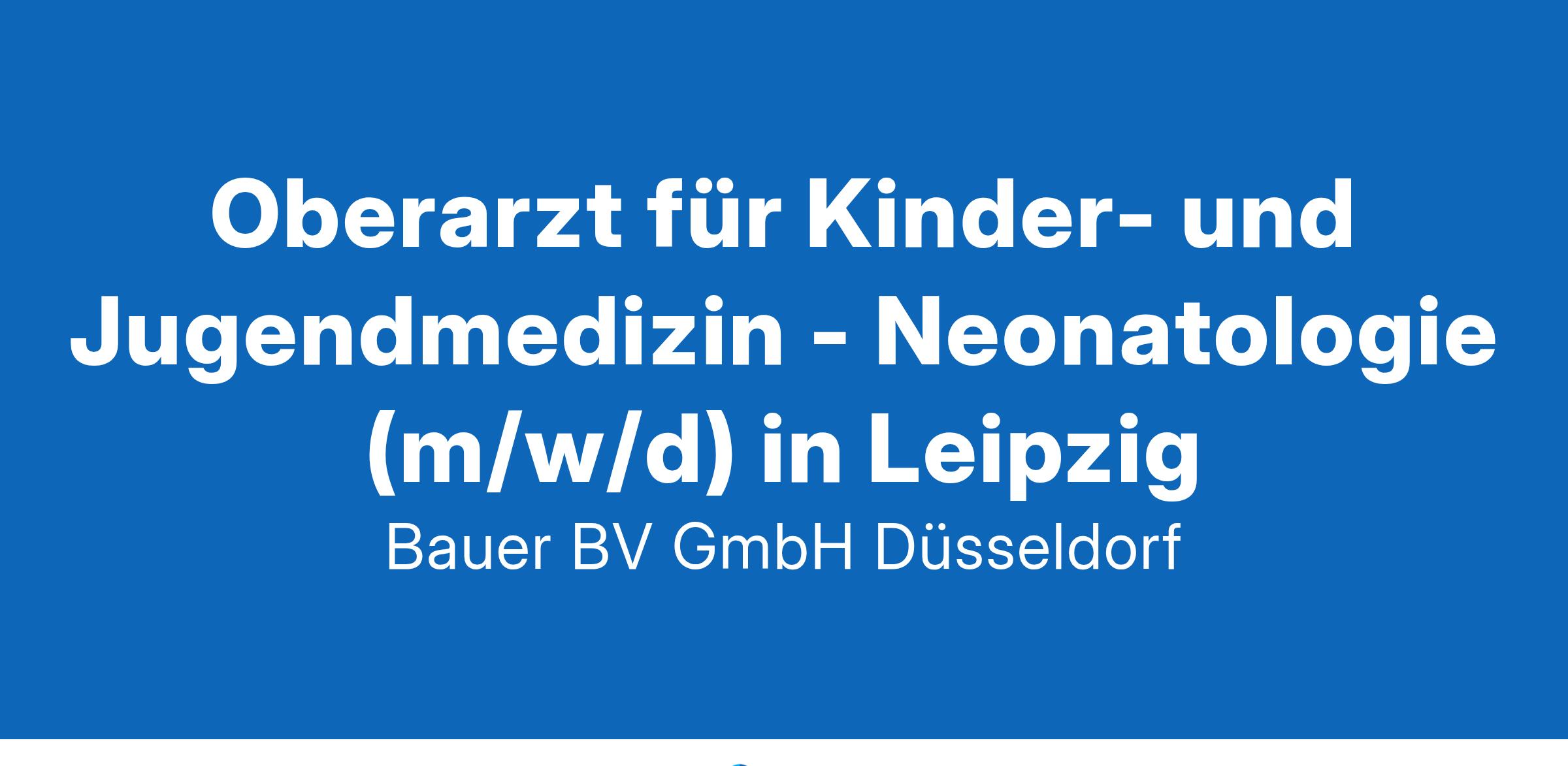 Anstellungsart(en): VollzeitIhr neuer Arbeitsplatz:Akademisches Lehrkrankenhaus / Schwerpunktversorger mit 900 Betten im Großraum Leipzig. Die Klinik für Kinder- und Jugendmedizin bietet eine regionale Versorgung im gesamten Spektrum der Kinderheilkunde (exkl. pädiatrischen Onkologie) auf hohem Niveau an. Dazu verfügt sie über 45 Betten, gliedert in eine interdisziplinäre Kinderstation, eine Frühgeborenen- und Kinderintensivstation mit 15 Betten, wo Frühgeborene ab der vollendeten 29. Schwangerschaftswoche versorgt werden, und ein Sozialpädiatrisches Zentrum. Die Klinik ist als Perinatalzentren Level II ausgewiesen.Ihre Vorteile:Moderne Klinik mit breitem fachlichen SpektrumHervorragendes fachliches Niveau und technische AusstattungAttraktiver und verantwortungsvoller ArbeitsplatzSektorübergreifende Betreuung der Kinder- und JugendlichenFreundliches und engagiertes TeamAttraktive VergütungUnbefristete Festanstellung mit PerspektiveIhr Profil:Facharzt (m/w/d) für Kinder- und JugendmedizinSchwerpunktbezeichnung NeonatologieGerne Zusatzbezeichnung Pädiatrische IntensivmedizinFundierte Kenntnisse und langjährige Erfahrung im FachbereichEngagement und TeamfähigkeitIhr Ansprechpartner:Bauer B+V Personalberatung