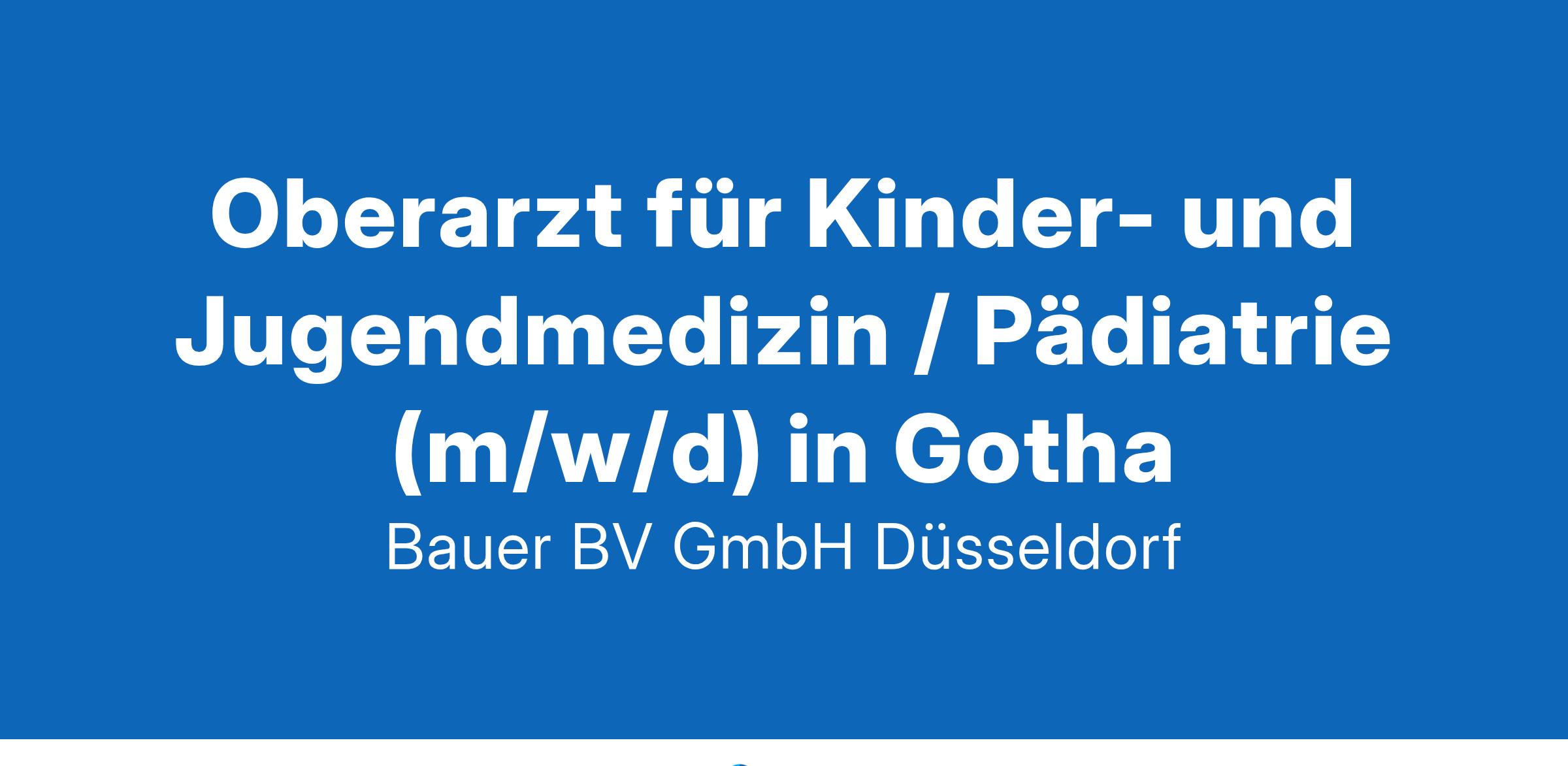 Anstellungsart(en): VollzeitIhr neuer Arbeitsplatz:Akademisches Lehrkrankenhaus und Krankenhaus der Schwerpunktversorgung mit knapp 700 Betten im Raum Gotha (Thüringen). Die Klinik für Kinder- und Jugendmedizin verfügt über 40 Betten und betreut die Schwerpunkte Kindergastroenterologie, Diabetologie, Neuropädiatrie und die Kinderurologie sowie Früh- und Neugeborenen-Intensivmedizin (Level I nach GBA) mit 15 Betten. Eine Klinik für Kinderchirurgie sowie ein Sozialpädiatrisches Zentrum sind angegliedert.Ihre Vorteile:Moderne Klinik mit breitem fachlichen SpektrumAttraktiver und verantwortungsvoller ArbeitsplatzFreundliches und engagiertes TeamWeiterbildungsermächtigung NeonatologieAttraktive VergütungUnbefristete Festanstellung mit PerspektiveIhr Profil:Facharzt (m/w/d) für Kinder- und JugendmedizinFundierte Kenntnisse im FachbereichGerne Zusatzbezeichnung NeonatologieEngagement und TeamfähigkeitIhr Ansprechpartner:Bauer B+V Personalberatung