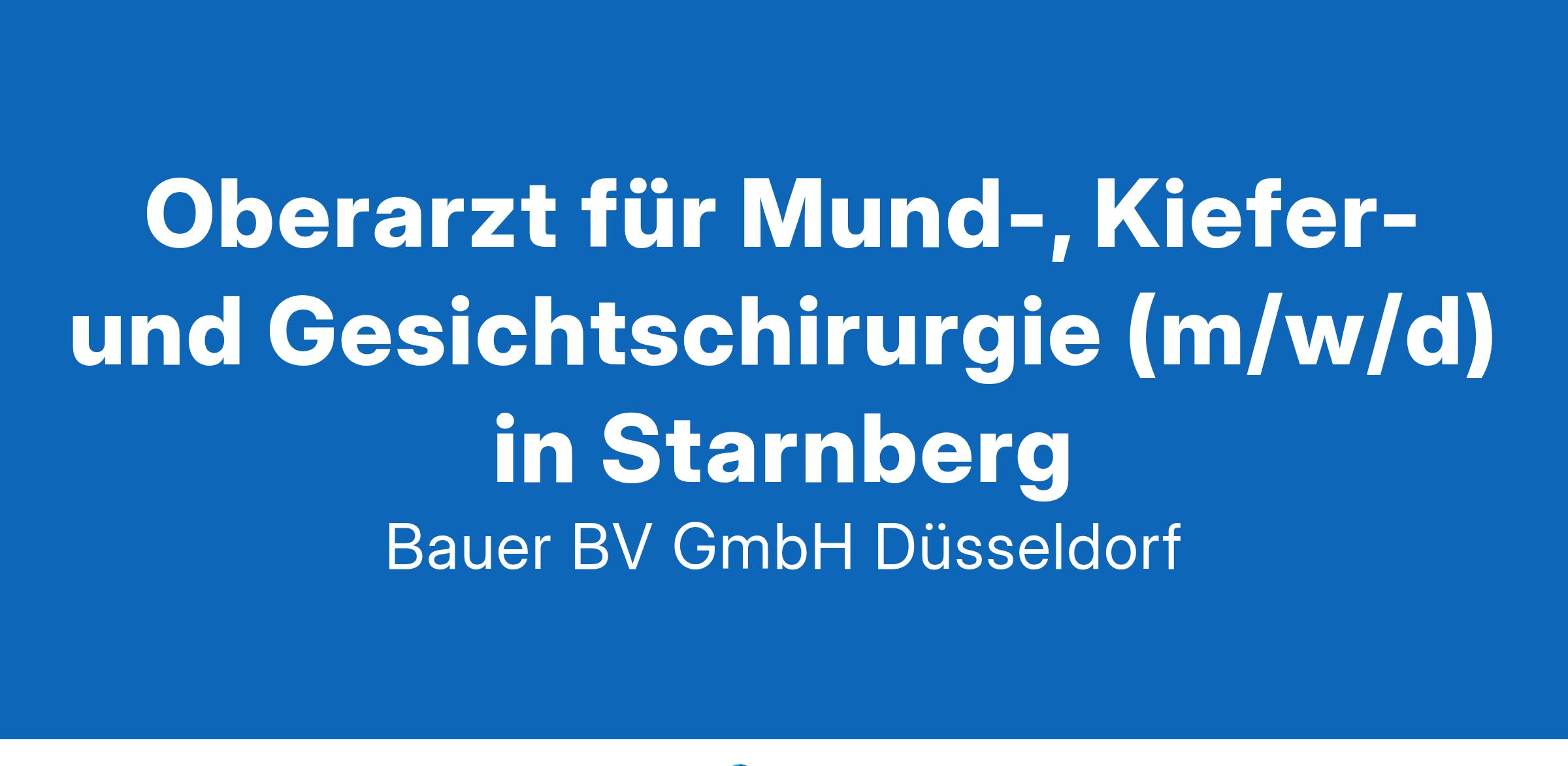 Anstellungsart(en): VollzeitIhr neuer Arbeitsplatz:Krankenhaus der Maximalversorgung mit 650 Betten im Raum Starnberg (Oberbayern). Die Klinik versorgt das gesamte Spektrum der Mund-, Kiefer- und Gesichtschirurgie mit dem Fokus auf die Akuttraumatologie sowie den sekundären Rekonstruktionen einschließlich der mikrochirurgischen Rekonstruktionen.Ihre Vorteile:Moderner Arbeitsplatz in einem der größten Traumazentren der RegionAbwechslungsreiches TätigkeitsfeldFreundliches und engagiertes TeamAttraktive VergütungViele WeiterbildungsmöglichkeitenUnbefristete FestanstellungKlinikeigene KindertagesstätteIhr Profil:Facharzt (m/w/d) für Mund-, Kiefer- und GesichtschirurgieFundierte Kenntnisse im Fachbereich, insb. in der TraumatologieEngagement und TeamfähigkeitIhr Ansprechpartner:Bauer B+V Personalberatung