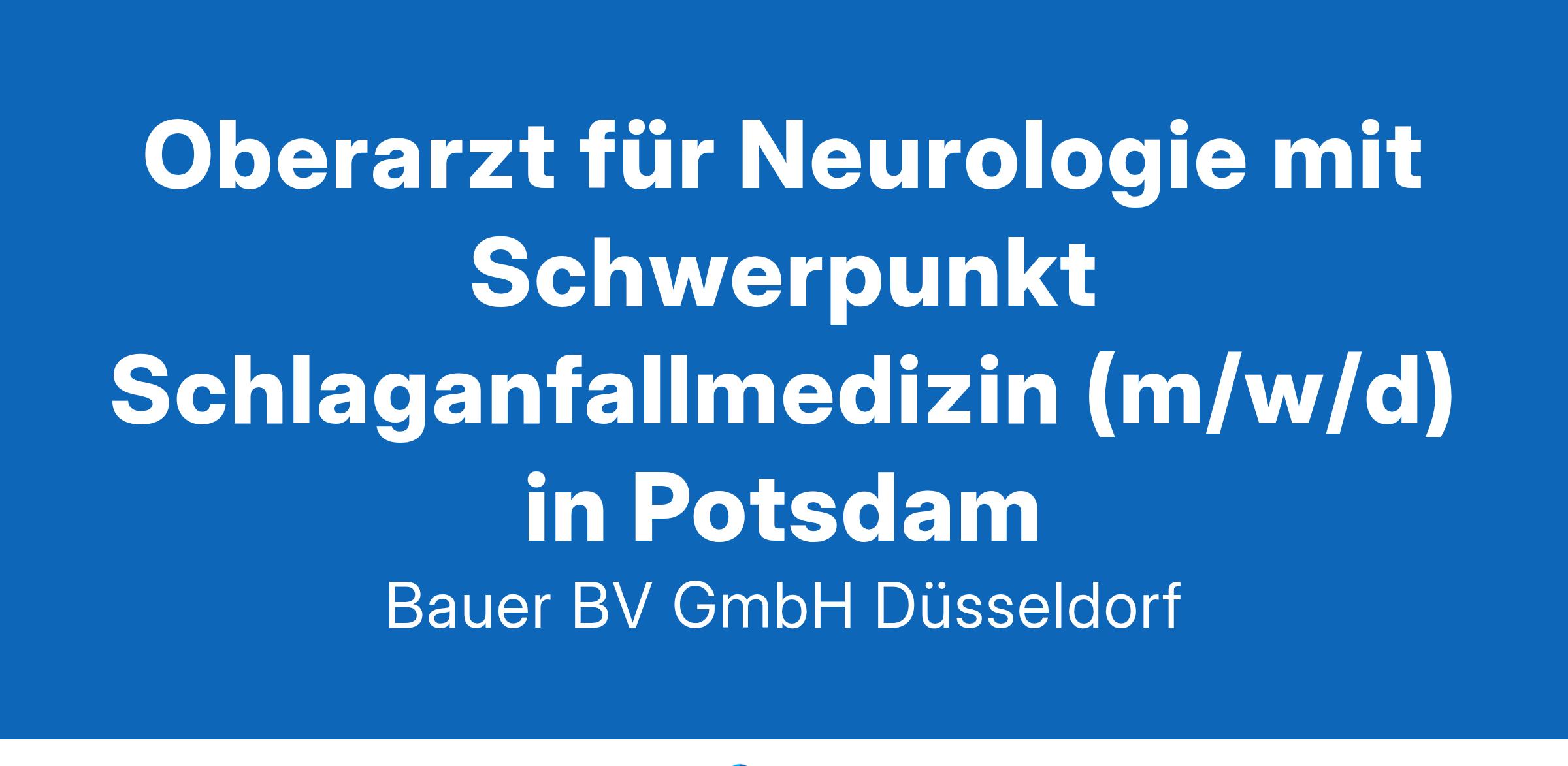 Anstellungsart(en): VollzeitIhr neuer Arbeitsplatz:Krankenhaus der Schwerpunktversorgung und Akademisches Lehrkrankenhaus mit rund 550 Betten im Raum Potsdam. Zum Aufbau der Klinik für Neurologie inkl. Stroke Unit suchen wir einen erfahrenen Oberarzt (m/w/d) mit Schwerpunkt in der Schlaganfallmedizin.Ihre Vorteile:Moderne KlinikAnspruchsvolles AufgabengebietMitwirkung am Aufbau und der Entwicklung der Stroke UnitUmfassende Patientenversorgung im Fach Neurologie mit Schwerpunkt SchlaganfallEigenverantwortliche Leitung der Diagnostik und TherapieFreundliches und engagiertes TeamMöglichkeit zur Teilnahme an Forschung, Wissenschaft und LehreUnterstützung und Förderung von WeiterbildungenAttraktive VergütungUnbefristete Festanstellung in Voll- oder TeilzeitIhr Profil:Facharzt (m/w/d) NeurologieFundierte Kenntnisse und Erfahrungen in der SchlaganfallbehandlungKenntnisse in der neurophysiologischen DiagnostikEngagement und Freude an der Weiterentwicklung der KlinikFührungskompetenz sowie Kommunikations- und TeamfähigkeitIhr Ansprechpartner:Bauer B+V Personalberatung