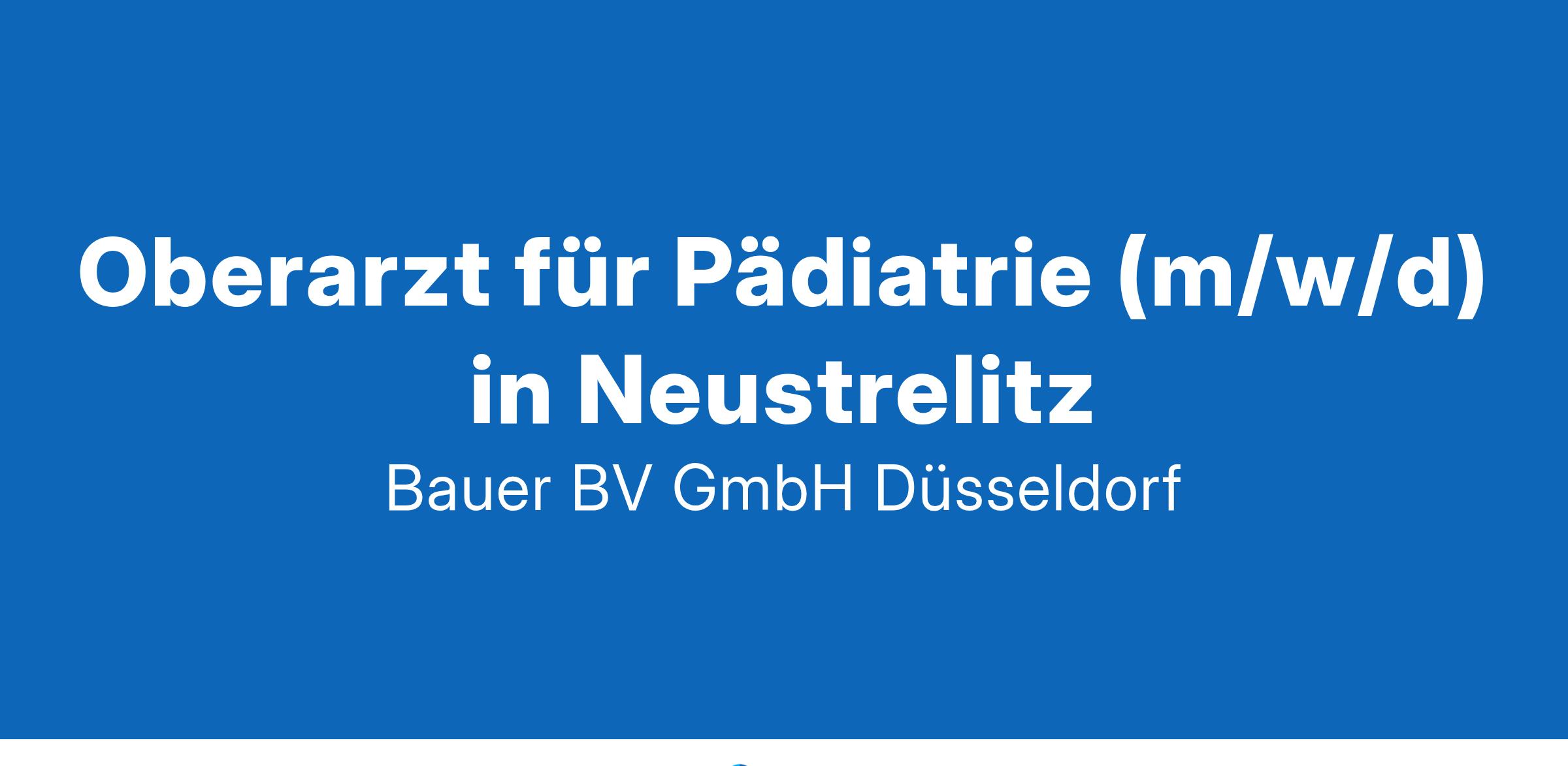 Anstellungsart(en): VollzeitIhr neuer Arbeitsplatz:Akademisches Lehrkrankenhaus mit ca. 900 Betten im Raum Neustrelitz. Die Klinik im Zentrum für Kinder- und Jugendmedizin verfügt über insgesamt 50 Betten, davon 14 Betten für Intensivtherapie. Jährlich werden etwa 3.700 Patienten stationär behandelt.Ihre Vorteile:Abwechslungsreiches und vielseitiges AufgabengebietKollegiales, stabiles und motiviertes TeamTeilnahme an internen und externen FortbildungsveranstaltungenAttraktive VergütungUnbefristete Festanstellung mit PerspektiveIhr Profil:Facharzt (m/w/d) für Kinder- und JugendmedizinMehrjährige Fach- und FührungserfahrungEngagement und TeamfähigkeitIhr Ansprechpartner:Bauer B+V Personalberatung