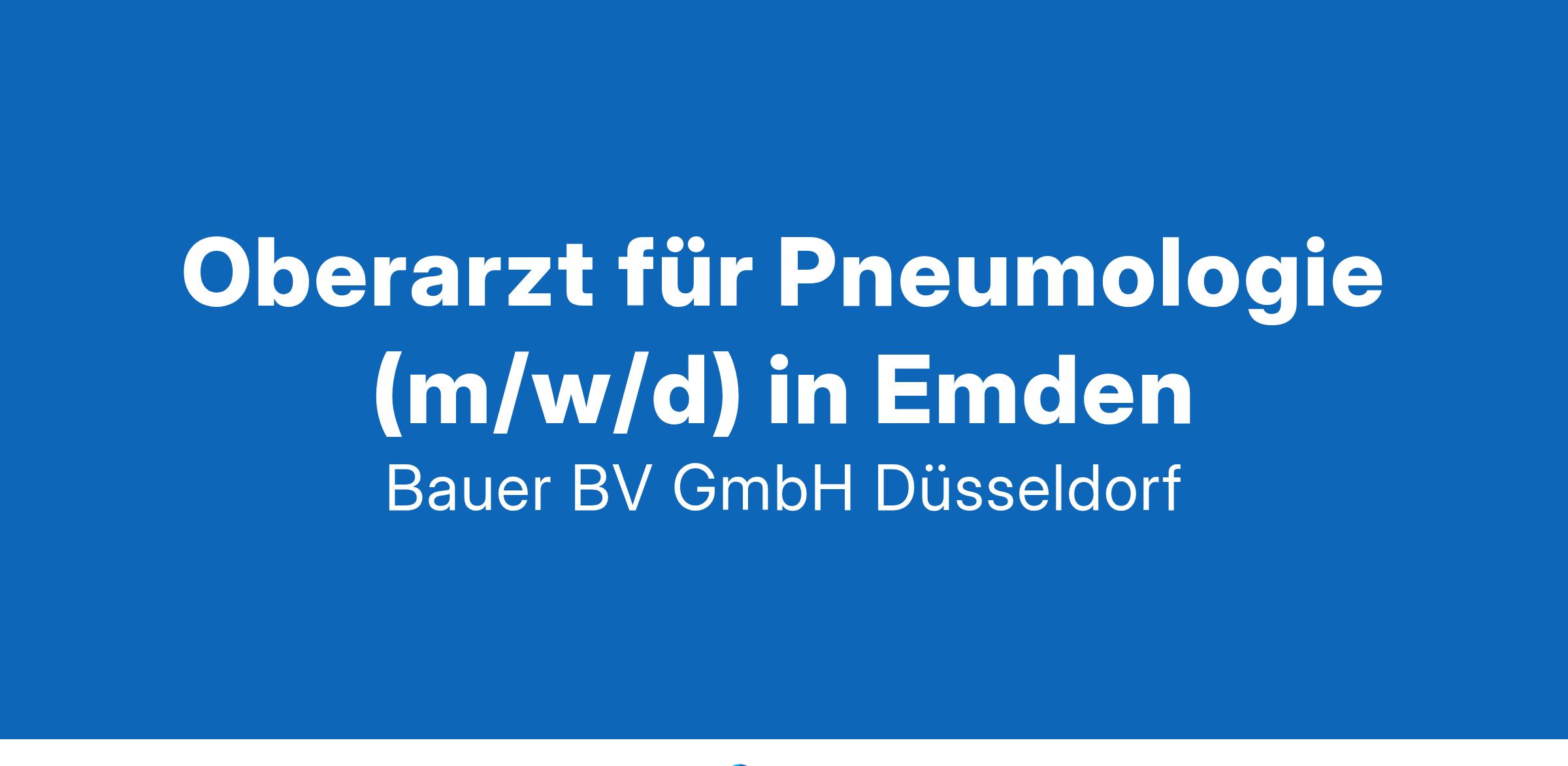 Anstellungsart(en): VollzeitIhr neuer Arbeitsplatz:Für ein Akutkrankenhaus und akademisches Lehrkrankenhaus mit 390 Betten in der Region Emden suchen wir einen Oberarzt (m/w/d) für Innere Medizin und Pneumologie. Die Pneumologie ist ein wesentlicher Bestandteil der Klinik für Innere Medizin, die derzeit 85 Betten umfasst und jährlich etwa 4.000 Patienten stationär versorgt.Die beliebte Region an der Nordseeküste bietet den perfekten Mix aus naturnaher Ruhe und urbaner Infrastruktur. Die Region ist verkehrstechnisch gut angebunden, die Immobilienpreise moderat.Ihre Aufgaben:Ärztliche Tätigkeit im stationären und ambulanten BereichFachärztliche Supervision der Assistenzärzte (m/w/d)Durchführung sämtlicher pneumologischer Untersuchungen und DiagnostikMitwirkung an der Qualitätsverbesserung und Weiterentwicklung des FachbereichsBeteiligung an der Palliativversorgung und interdisziplinären ZusammenarbeitIhre Vorteile:Moderne Klinik mit innovativer Ausstattung und hoher medizinischer ExpertiseBreites und abwechslungsreiches Aufgabengebiet in einer zukunftsorientierten AbteilungEntwicklungsmöglichkeiten und aktives Gestaltungspotential in einem wachsenden TeamAttraktive Vergütung und unbefristete Festanstellung mit langfristiger PerspektiveUnterstützung und Förderung von Weiterbildungen sowie regelmäßige Fort- und WeiterbildungsmaßnahmenFreundliches und engagiertes Team, das in einer wertschätzenden und kollegialen Arbeitsatmosphäre zusammenarbeitetKlinikeigene Kinderbetreuung, um Familie und Beruf bestens zu vereinbarenIhr Profil:Facharzt (m/w/d) für Innere Medizin und PneumologiePraktische Erfahrung im Fachbereich, idealerweise auch in der Betreuung von Patienten mit akuten und chronischen pneumologischen ErkrankungenHohes Maß an Engagement, Teamfähigkeit und KommunikationsstärkeBereitschaft zur aktiven Mitgestaltung der Abteilung und zum Einbringen eigener IdeenIhr Kontakt:Bauer B+V Personalberatung