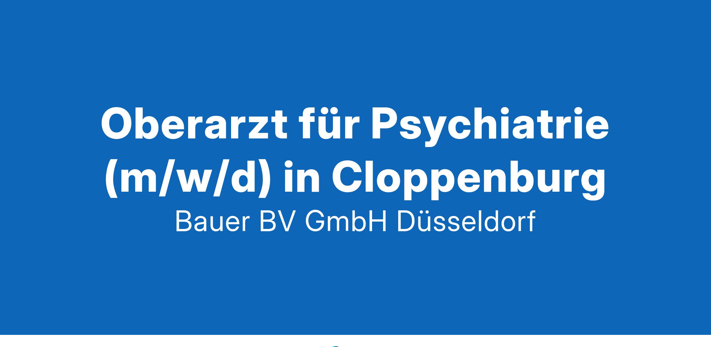 Anstellungsart(en): Teilzeit - flexibel, VollzeitIhr neues Tätigkeitsfeld:Krankenhaus der Grund- und Regelversorgung mit 250 Betten im Raum Cloppenburg. Die Klinik für Psychiatrie, Psychotherapie und Psychosomatik verfügt über ca. 100 Betten und versorgt die Patienten im Rahmen eines integrativen Behandlungskonzepts. Eine psychiatrische Institutsambulanz ist angegliedert.Ihre Vorteile:Gestaltungsmöglichkeiten bei der Weiterentwicklung der KlinikEtablierte und sich entwickelnde Klinik mit vielseitigem SpektrumAngenehmes ArbeitsklimaAttraktives VergütungsmodellUnbefristete Festanstellung in Voll- und TeilzeitIhr Profil:Facharzt (m/w/d) für Psychiatrie und PsychotherapieFundierte Kenntnisse im FachbereichInteresse an fachärztlichen WeiterentwicklungenMotivation und GestaltungswilleIhr Ansprechpartner:Bauer B+V Personalberatung