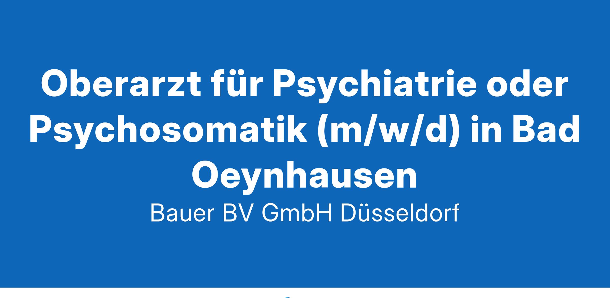 Anstellungsart(en): Teilzeit, VollzeitIhr neuer Arbeitsplatz:Psychiatrische Fachklinik im Raum Bad Oeynhausen mit 110 psychiatrischen und 80 psychosomatischen Betten. Zudem werden knapp 70 teilstationäre Plätze und zwei Institutsambulanzen betreut. Das Behandlungs-Spektrum umfasst sämtliche Erkrankungen der Psychiatrie und Psychosomatik mit schulen-übergreifendem Ansatz in einem integrativen Behandlungskonzept.Ihr Aufgabenbereich:Versorgug der Patienten im stationären BereichAusbildung der AssistenzärzteZusammenarbeit mit KooperationspartnernIhre Vorteile:Verantwortungsvoller und abwechslungsreicher ArbeitsplatzSehr gut ausgebildetes, multiprofessionelles TeamUnterstützung beim PromotionswunschRegelmäßige SupervisionEntlastung von nichtärztlichen TätigkeitenFamiliäres BetriebsklimaAttraktive VergütungUnbefristete Festanstellung mit PerspektiveIhr Profil:Facharzt für Psychiatrie oder Psychosomatik (m/w/d)Fundierte Kenntnisse im jew. FachbereichGerne störungsspezifische QualifikationenEngagement und soziale KompetenzIhr Ansprechpartner:Bauer B+V Personalberatung