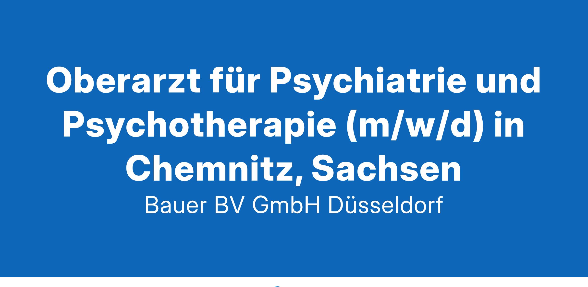 Anstellungsart(en): VollzeitIhr neuer Arbeitsplatz:Akademisches Lehrkrankenhaus mit rund 400 Betten in der Region Chemnitz. Die Klinik für Psychiatrie, Psychotherapie und Psychosomatik umfasst vier offen geführte Stationen mit insgesamt 80 Betten, eine Tagesklinik sowie eine Institutsambulanz. Die Praxen des Medizinischen Versorgungszentrums für Neurologie, Nervenheilkunde und Psychotherapie ergänzen den ambulanten Bereich. Zudem befindet sich in der Nähe eine medizinische und berufliche Rehabilitationseinrichtung für psychisch kranke Menschen.Ihre Vorteile:Moderne KlinikKreative Arbeitsmöglichkeiten mit großzügigem GestaltungsspielraumFreundliches und engagiertes TeamUnterstützung und Förderung von WeiterbildungenAttraktive VergütungUnbefristete Festanstellung mit PerspektiveIhr Profil:Facharzt für Psychiatrie und Psychotherapie (m/w/d)Fundierte Kenntnisse im gesamten FachbereichMenschlich und fachlich qualifizierte PersönlichkeitEngagement und soziale KompetenzIhr Ansprechpartner:Bauer B+V Personalberatung