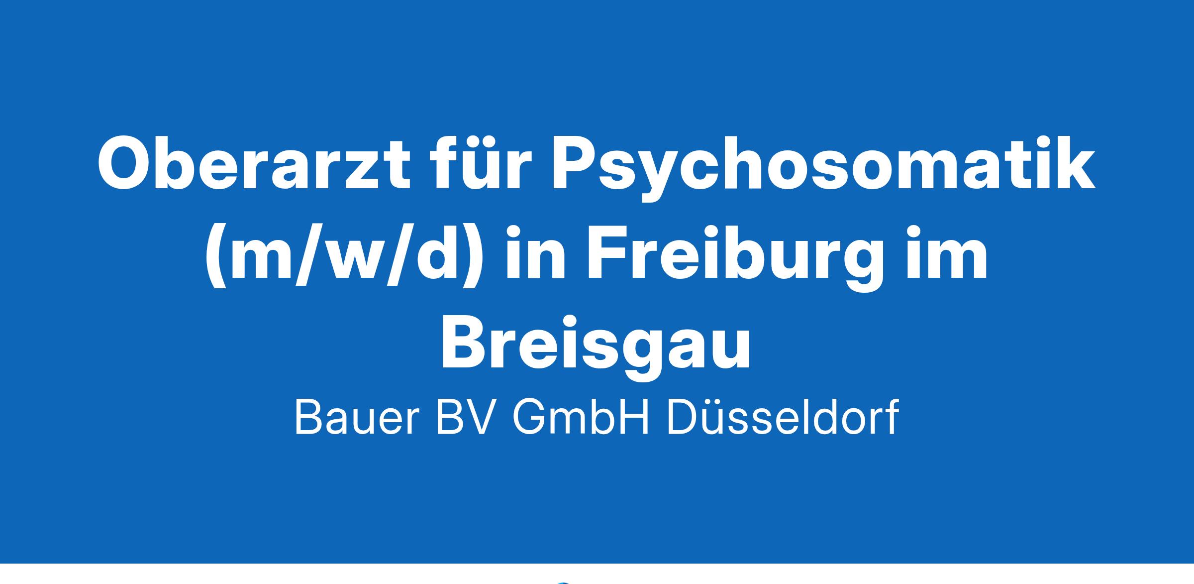 Standort: Freiburg im BreisgauIhr neuer Arbeitsplatz:In der Klinik für Psychosomatische Medizin und Psychotherapie im Raum Freiburg erwartet Sie ein innovatives und interdisziplinär ausgerichtetes Arbeitsumfeld. Mit 39 Behandlungsplätzen und integrierter Tagesklinik wird eine umfassende Betreuung angeboten, die auf einem integrativen Konzept basiert und psychodynamische Prinzipien mit modernen Therapieansätzen vereint. Das Behandlungsteam setzt auf eine multimodale Herangehensweise, die neben Einzel- und Gruppentherapie auch kreative und körperorientierte Verfahren wie Musik- und Kunsttherapie umfasst. Zum weiteren Ausbau der Abteilung suchen wir einen Oberarzt für Psychosomatik (m/w/d).Ihr Aufgabenbereich:Psychosomatische und psychotherapeutische Betreuung der PatientenLeitung interdisziplinärer TeambesprechungenDurchführung von Konsiliaruntersuchungen sowie Teilnahme am HintergrunddienstEngagement in der Fort- und Weiterbildung der AssistenzärzteIhre Vorteile:Ein abwechslungsreiches und spannendes Arbeitsumfeld mit viel Raum für MitgestaltungRegelmäßige interne und externe SupervisionEnge Zusammenarbeit und Austausch mit anderen Fachabteilungen des KlinikumsAttraktive Vergütung bei unbefristeter AnstellungIhr Profil:Facharzt (m/w/d) für Psychosomatische Medizin und Psychotherapie bzw. kurz vor dem Abschluss der WeiterbildungPsychodynamische TherapieausrichtungLeidenschaft für die psychosomatische und psychotherapeutische ArbeitInteresse an Weiterentwicklung sowie aktiver MitgestaltungTeamfähigkeit, Verantwortungsbewusstsein und ein hohes Maß an EmpathieIhr Ansprechpartner:Bauer B+V Personalberatung