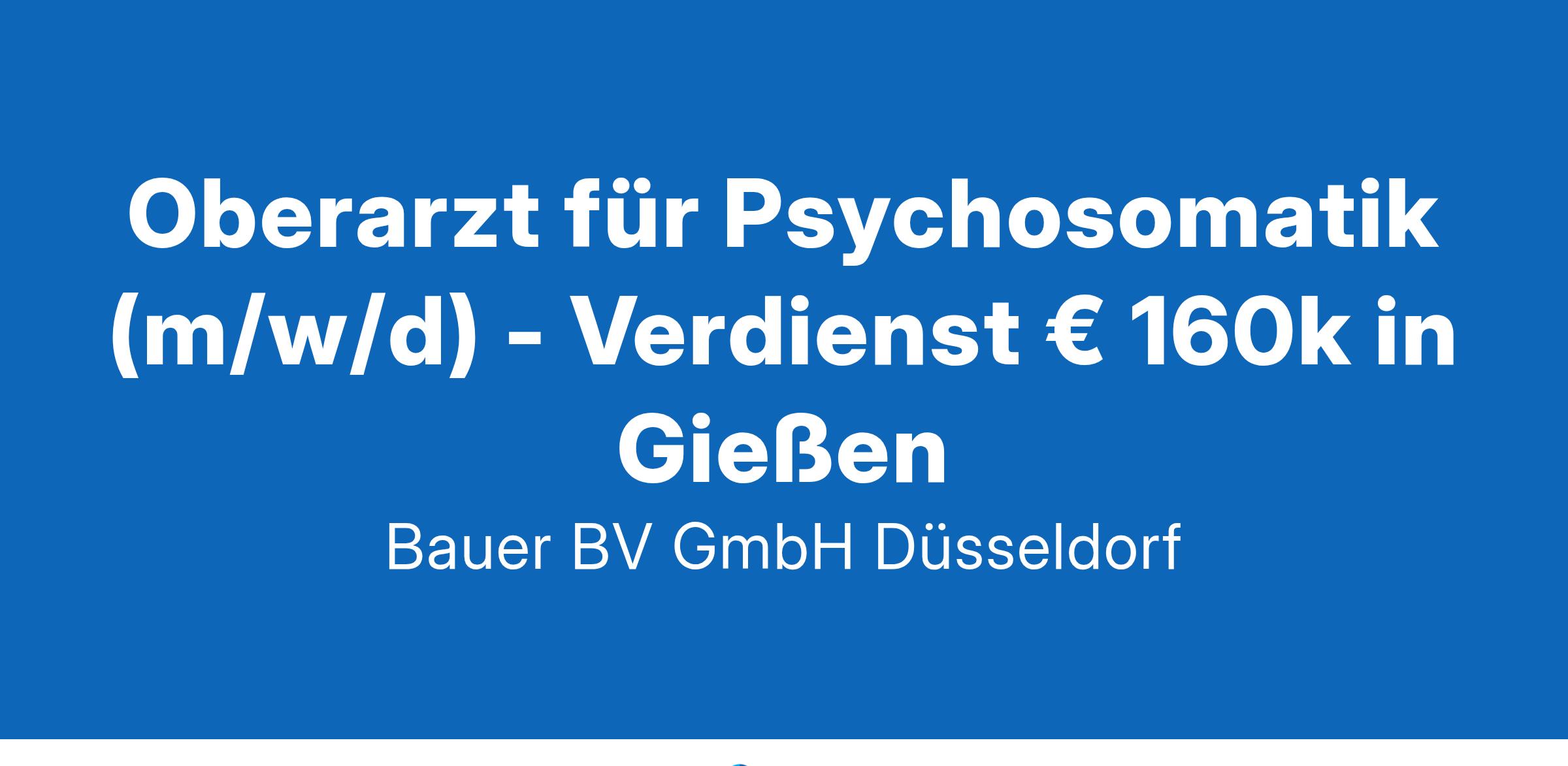 Oberarzt für Psychosomatik (m/w/d) - Verdienst € 160kStellen-ID: 3152