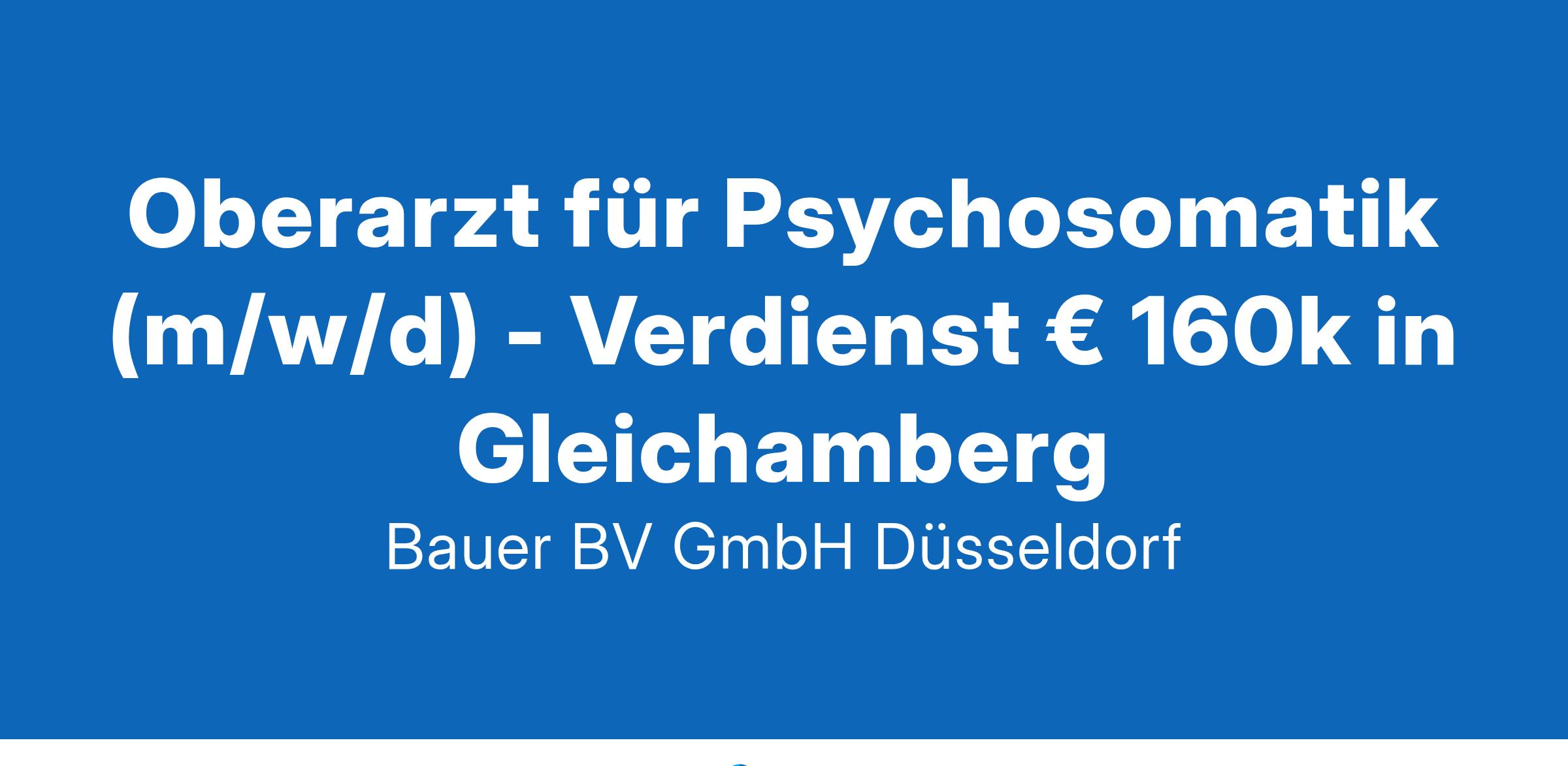 Oberarzt für Psychosomatik (m/w/d) - Verdienst € 160kStellen-ID: 3160