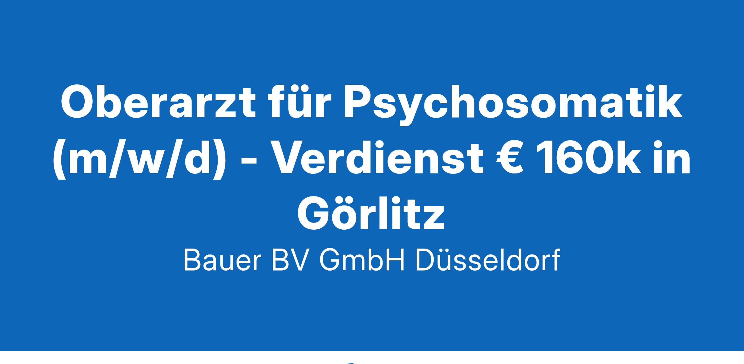 Standort: Görlitz, NeißeIhr neuer Arbeitsplatz:Für eine renommierte Klinik für Psychosomatische Medizin und Psychotherapie im Raum Görlitz suchen wir einen Oberarzt für Psychosomatik (m/w/d).Ihre Vorteile:Abwechslungsreiches und spannendes TätigkeitsfeldPsychosomatische und psychotherapeutische PatientenversorgungLeitung interdisziplinärer TeambesprechungenWeiterbildung der AssistenzärzteViel Raum für MitgestaltungRegelmäßige interne und externe SupervisionAttraktive Vergütung von jährlich ca. € 160kUnbefristete AnstellungIhr Profil:Facharzt (m/w/d) für Psychosomatische Medizin und PsychotherapieSchwerpunkt auf psychodynamischer TherapieAusgeprägte Teamfähigkeit, Verantwortungsbewusstsein und EmpathieIhr Ansprechpartner:Bauer B+V Personalberatung