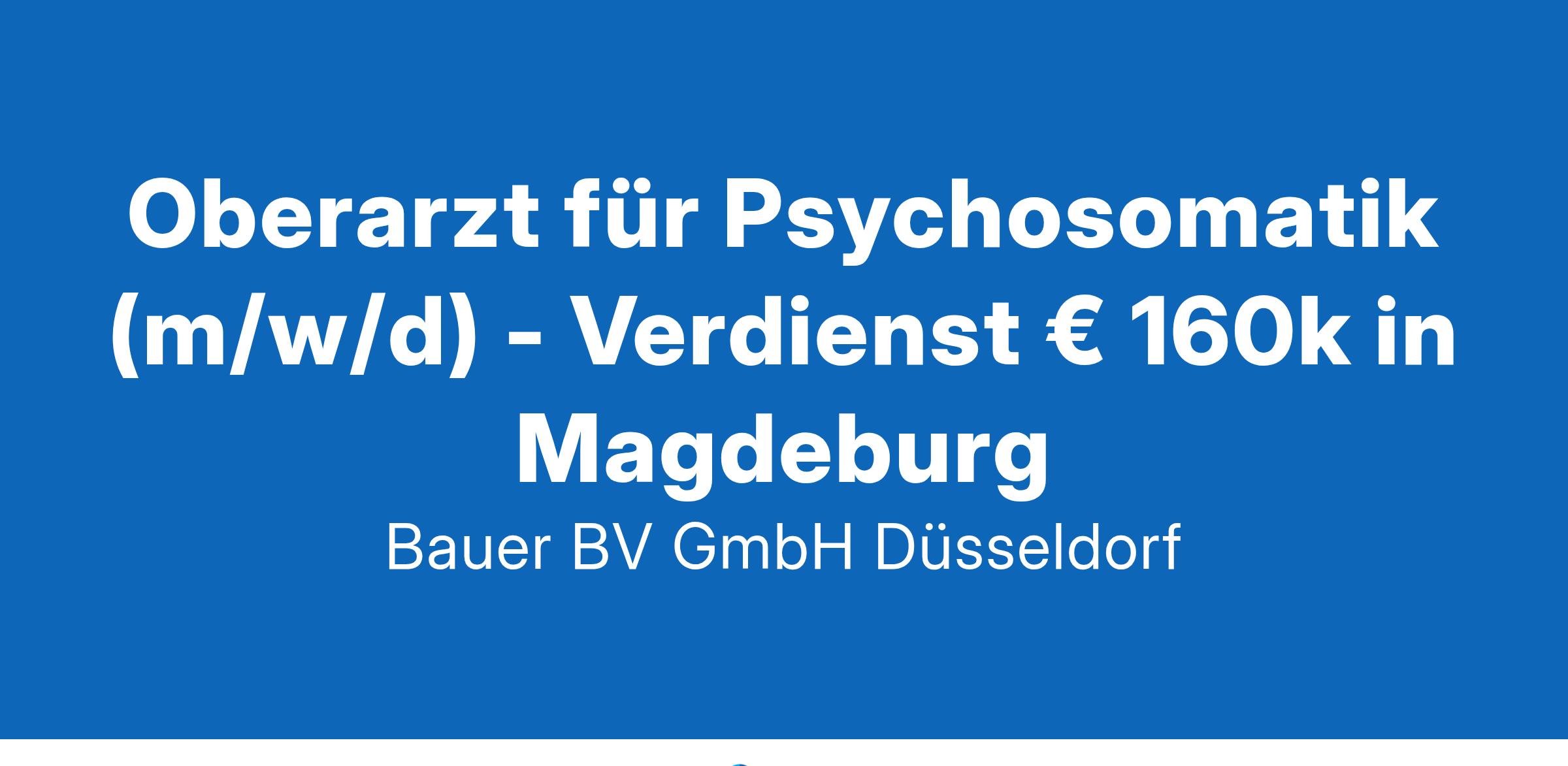 Oberarzt für Psychosomatik (m/w/d) - Verdienst € 160kStellen-ID: 3163