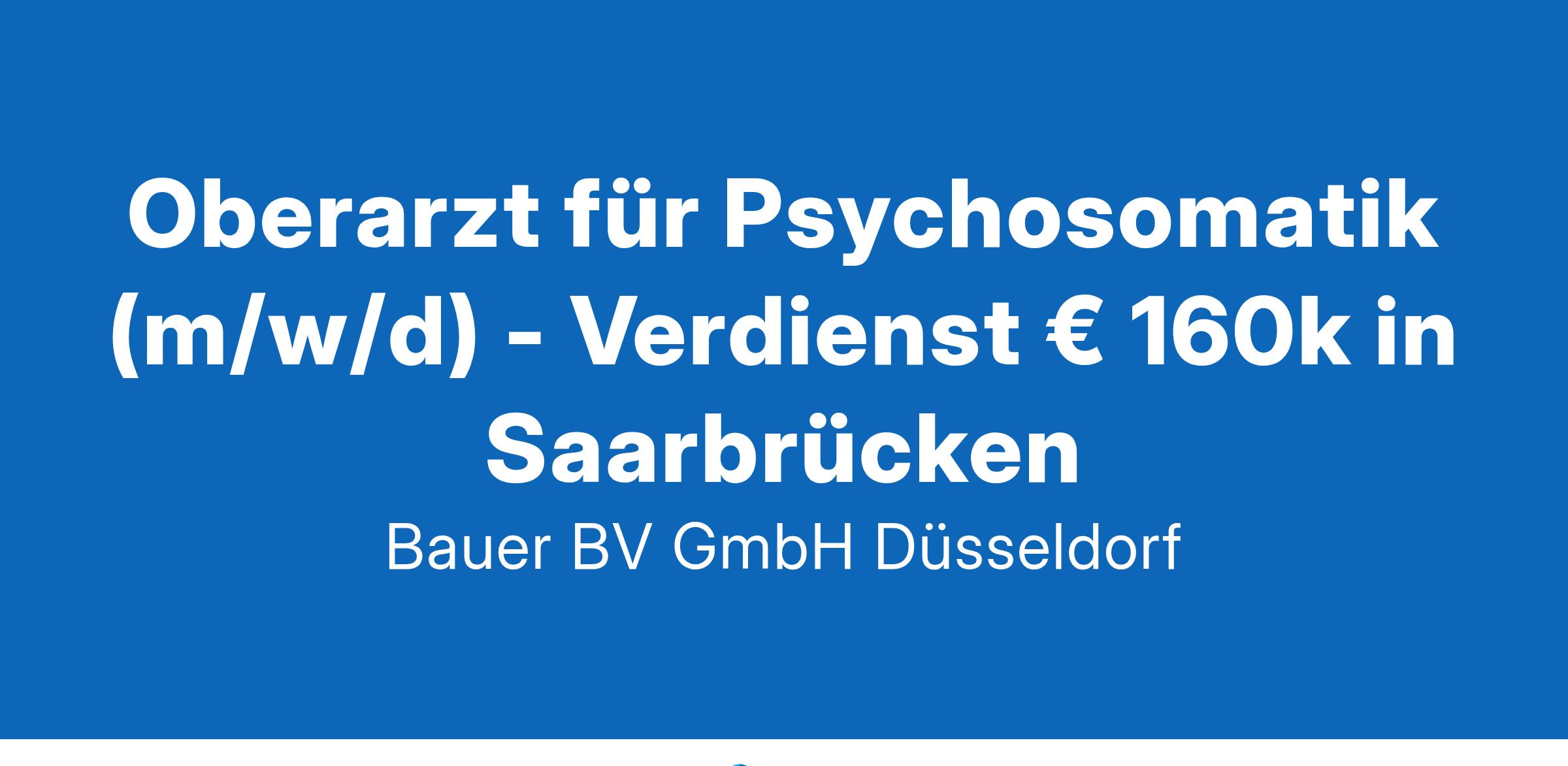 Standort: SaarbrückenIhr neuer Arbeitsplatz:Für eine renommierte Klinik für Psychosomatische Medizin und Psychotherapie im Raum Saarbrücken suchen wir einen Oberarzt für Psychosomatik (m/w/d).Ihre Vorteile:Abwechslungsreiches und spannendes TätigkeitsfeldPsychosomatische und psychotherapeutische PatientenversorgungLeitung interdisziplinärer TeambesprechungenWeiterbildung der AssistenzärzteViel Raum für MitgestaltungRegelmäßige interne und externe SupervisionAttraktive Vergütung von jährlich ca. € 160kUnbefristete AnstellungIhr Profil:Facharzt (m/w/d) für Psychosomatische Medizin und PsychotherapieSchwerpunkt auf psychodynamischer TherapieAusgeprägte Teamfähigkeit, Verantwortungsbewusstsein und EmpathieIhr Ansprechpartner:Bauer B+V Personalberatung