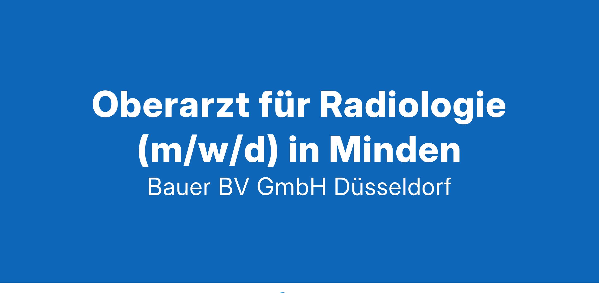 Anstellungsart(en): VollzeitIhr neuer Arbeitsplatz:Krankenhaus der Schwerpunktversorgung mit rund 800 Betten im Raum Minden. Die Klinik für Radiologie betreut ein breites Fachspektrum unter anderem mit Kardiobildgebung, Neuroradiologie, Mammadiagnostik; interventionell sowie mit intrakranieller Thrombektomie, TACE, Aortenstent, Carotisstent und Vakuumbiopsie.Ihre Vorteile:Breites fachliches Spektrum mit moderner technischer Ausstattung256-Schichten-CTPECT-CT1.5T und 3.0T2 FD-Angiographieanlagen, eine davon biplanTomosyntheseFreundliches und engagiertes TeamAttraktive VergütungUnbefristete Festanstellung mit langfristiger PerspektiveIhr Profil:Facharzt für Radiologie (m/w/d)Fundierte Kenntnisse im FachbereichEngagement und TeamfähigkeitIhr Ansprechpartner:Bauer B+V Personalberatung