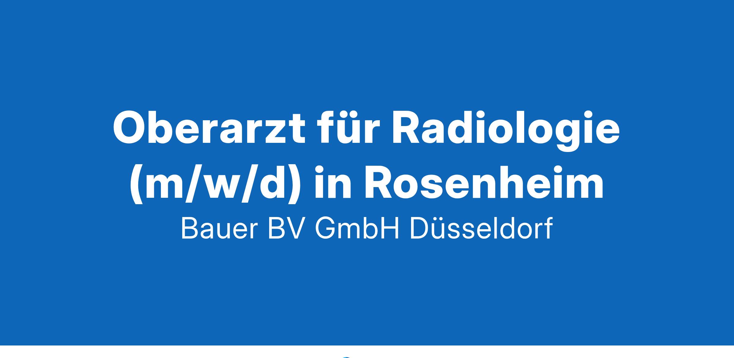 Anstellungsart(en): VollzeitIhr neuer Arbeitsplatz:Akademisches Lehrkrankenhaus mit rund 300 Betten in der Region Rosenheim (Chiemgau) mit einem breitem Behandlungsspektrum (Neuropädiatrie, Neurochirurgie, Neurologie, Kinderorthopädie, Orthopädie, Handchirurgie sowie Herz- und Gefäßchirurgie). Die Klinik für diagnostische und interventionelle Radiologie betreut alle Hauptfachabteilungen mit CT, MRT und konventioneller Radiologie.Ihre Vorteile:Moderne Klinik in einer attraktiven UrlaubsregionBreites fachliches Spektrum mit moderner technischer AusstattungFreundliches und engagiertes TeamAttraktive VergütungKeine Nacht- und WochenenddiensteUnbefristete Festanstellung mit langfristiger PerspektiveIhr Profil:Facharzt für Radiologie (m/w/d)Fundierte Kenntnisse im FachbereichInteresse an Kinderorthopädie, Orthopädie, Herz- und Gefäßchirurgie und IntensivmedizinIhr Ansprechpartner:Bauer B+V Personalberatung