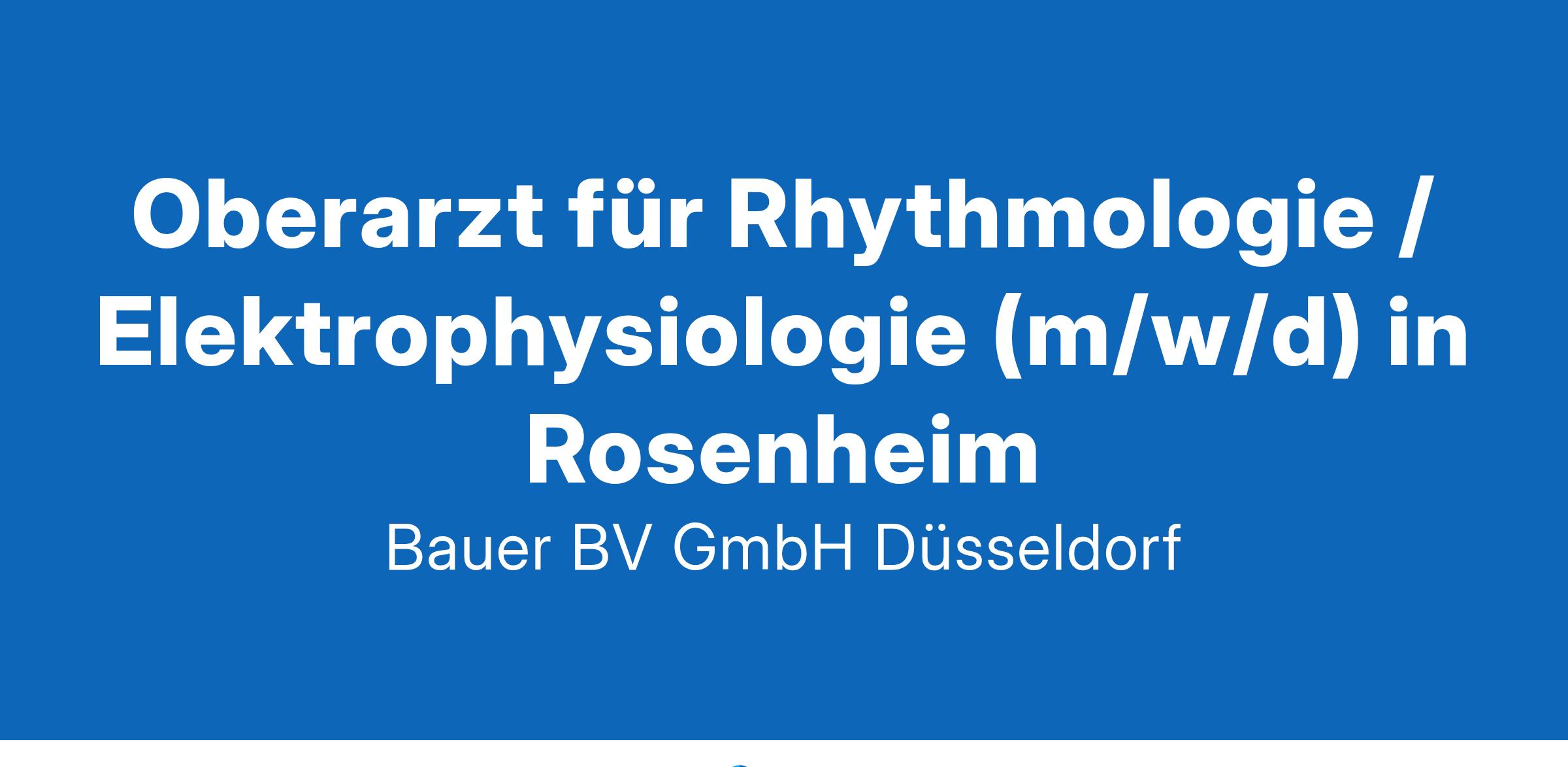 Anstellungsart(en): VollzeitIhr neuer Arbeitsplatz:Akademisches Lehrkrankenhaus mit 600 Betten in der Region Rosenheim. Die Sektion Rhythmologie / Elektrophysiologie befasst sich mit der Diagnose und Behandlung aller Arten von Herzrhythmusstörungen mit Schwerpunkt Katheterablationen, aber auch alle anderen Arten der Behandlung von Arrhythmien.Ihr Vorteil:Moderne Klinik in attraktiver LageHervorragende technische AusstattungInteressantes Behandlungsspektrum:Elektrophysiologische Untersuchungen und KatheterablationenSchrittmacher- und ICD-ImplantationenKontrollen aktiver Herzrhythmus-ImplantateGute und kollegiale ArbeitsatmosphäreUnterstützung von Fort- und WeiterbildungAttraktive BezahlungUnbefristete AnstellungIhr Profil:Facharzt für Kardiologie (m/w/d)Expertise in der Diagnostik und Therapie von HerzrhythmusstörungenMehrjährige Berufserfahrung im Bereich der invasiven Elektrophysiologie und/oder Device-ImplantationEngagement und TeamfähigkeitIhr Ansprechpartner:Bauer B+V Personalberatung