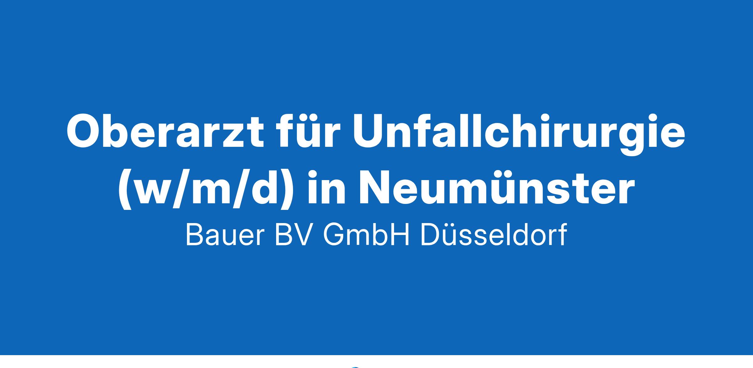 Anstellungsart(en): Teilzeit, VollzeitOberarzt Unfallchirurgie (w/m/d) – Ihre nächste Herausforderung in der Region Holstein!Sie möchten als Oberarzt (w/m/d) Teil eines modernen Krankenhauses werden, das hochqualitative, patientenorientierte Gesundheitsversorgung mit innovativen Verfahren verbindet? Dann ist unser Angebot genau das Richtige für Sie!Ihr neuer Arbeitsplatz:Für ein Krankenhaus der Schwerpunktversorgung mit 590 Betten nahe Neumünster suchen wir einen engagierten Oberarzt für Unfallchirurgie (m/w/d). Die chirurgische Klinik bietet mit 80 Betten und einem breit gefächerten Leistungsspektrum eine optimale Umgebung für Ihre fachliche und persönliche Weiterentwicklung. Besonderheiten sind die Frakturendoprothetik (Hüfte, Schulter, Ellenbogen) sowie innovative Wirbelsäulenverfahren wie Kyphoplastien und mikroskopisch assistierte Eingriffe. Zudem wurde unser Zentrum für Alterstraumatologie erst kürzlich rezertifiziert.Ihre Vorteile:Anspruchsvolle operative Eingriffe in der Unfallchirurgie und Endoprothetik.Aktive Mitgestaltung bei der Ausbildung von Assistenzärztinnen und PJ-Studentinnen.Teilnahme an BG- und unfallchirurgischen Sprechstunden sowie Hintergrunddiensten.Ein modernes Arbeitsumfeld mit hervorragender technischer Ausstattung.Attraktive Vergütung und unbefristete Festanstellung.Ein familienfreundliches Umfeld mit flexiblen Arbeitszeitmodellen.Kollegiale Arbeitsatmosphäre, in der Teamgeist und Wertschätzung großgeschrieben werden.Attraktive VergütungUnbefristete FestanstellungIhr Profil:Facharzt für Orthopädie und Unfallchirurgie (m/w/d)Erfahrungen in Endoprothetik, Wirbelsäulenchirurgie und ArthroskopieEngagement und TeamfähigkeitIhr Ansprechpartner:Bauer B+V Personalberatung