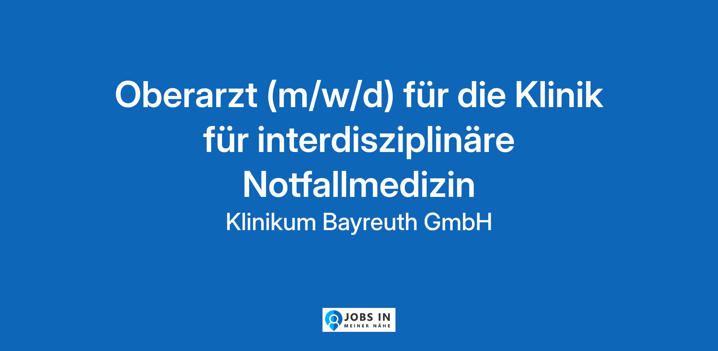 Die Klinikum Bayreuth GmbH erfüllt mit 27 Fachkliniken, 978 Betten und rund 3.500 Mitarbeitenden den Standard der Maximalversorgung und ist der führende Medizin-Dienstleister in Nordostoberfranken. Zudem ist die Klinikum Bayreuth GmbH mit ihren zwei Standorten in Bayreuth die überregional renommierte Anlaufstelle für Patientinnen und Patienten, die auf besonders hochwertige Versorgung Wert legen. Gemeinsam mit der Friedrich-Alexander-Universität Erlangen-Nürnberg, dem Universitätsklinikum Erlangen und der Universität Bayreuth steht die Klinikum Bayreuth GmbH für den Medizincampus Oberfranken. Hier absolvieren Medizin-Studierende den Klinischen Teil ihres Studiums. Damit bietet die Klinikum Bayreuth GmbH weit über die Region hinaus Diagnostik, Therapie, Forschung und Lehre auf universitärem Niveau und verbindet dies mit den Bedürfnissen und Anforderungen der Bevölkerung in Oberfranken nach einer umfassenden Gesundheitsversorgung.