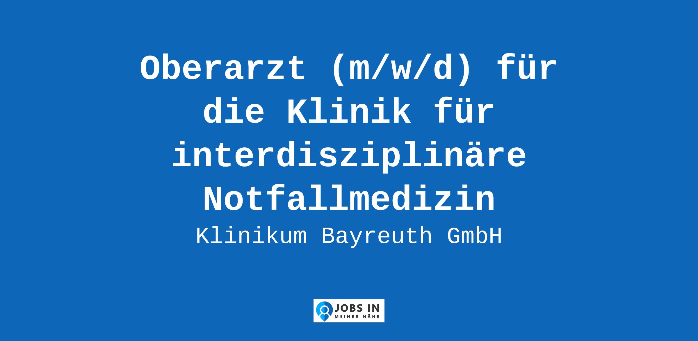 Die Klinikum Bayreuth GmbH erfüllt mit 27 Fachkliniken, 978 Betten und rund 3.500 Mitarbeitenden den Standard der Maximalversorgung und ist der führende Medizin-Dienstleister in Nordostoberfranken. Zudem ist die Klinikum Bayreuth GmbH mit ihren zwei Standorten in Bayreuth die überregional renommierte Anlaufstelle für Patientinnen und Patienten, die auf besonders hochwertige Versorgung Wert legen. Gemeinsam mit der Friedrich-Alexander-Universität Erlangen-Nürnberg, dem Universitätsklinikum Erlangen und der Universität Bayreuth steht die Klinikum Bayreuth GmbH für den Medizincampus Oberfranken. Hier absolvieren Medizin-Studierende den Klinischen Teil ihres Studiums. Damit bietet die Klinikum Bayreuth GmbH weit über die Region hinaus Diagnostik, Therapie, Forschung und Lehre auf universitärem Niveau und verbindet dies mit den Bedürfnissen und Anforderungen der Bevölkerung in Oberfranken nach einer umfassenden Gesundheitsversorgung.