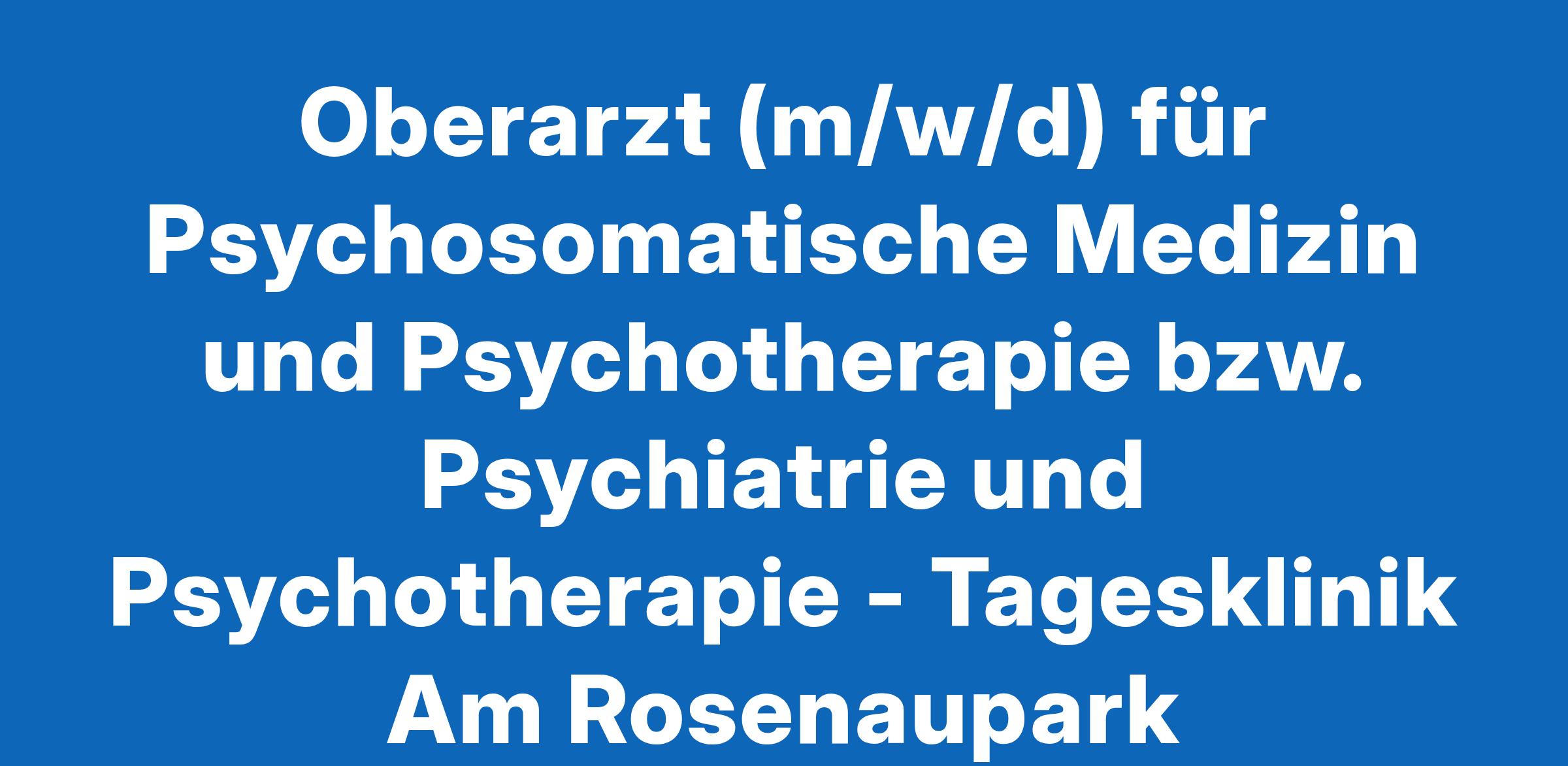 Oberarzt (m/w/d) für Psychosomatische Medizin und Psychotherapie bzw. Psychiatrie und Psychotherapie - Tagesklinik Am Rosenaupark