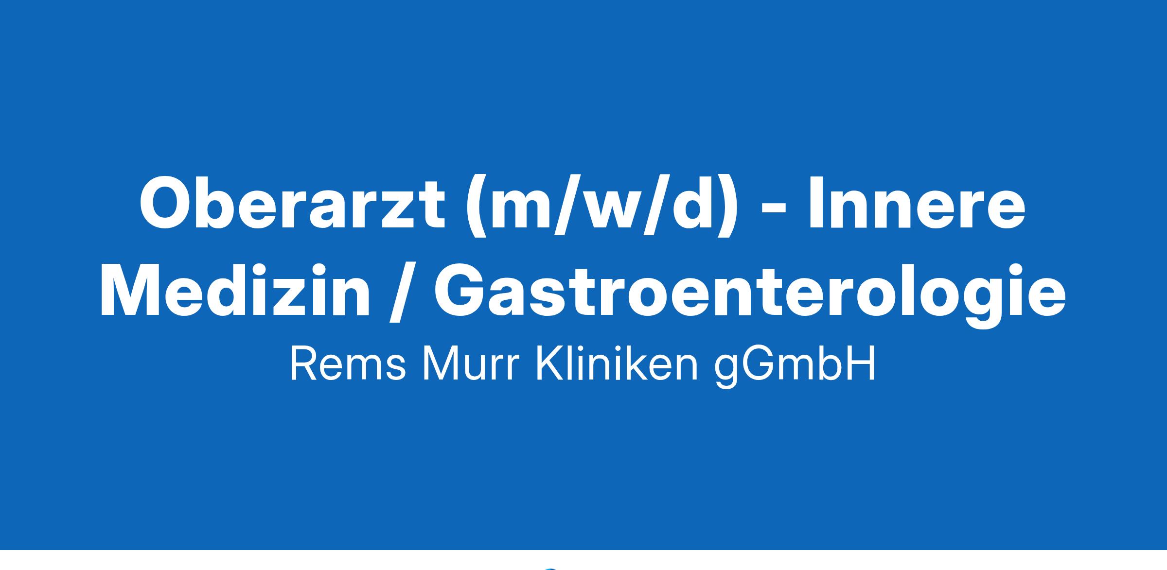 Oberarzt (m/w/d) - Innere Medizin / Gastroenterologiefür unsere Klinik für Gastroenterologie, Allgemeine Innere Medizin und GeriatrieReferenznummer: S-1-149-23In den Rems-Murr-Kliniken Winnenden und der Rems-Murr-Klinik Schorndorf werden in 21 Fachkliniken jährlich rund 51.000 Patientinnen und Patienten stationär versorgt.
