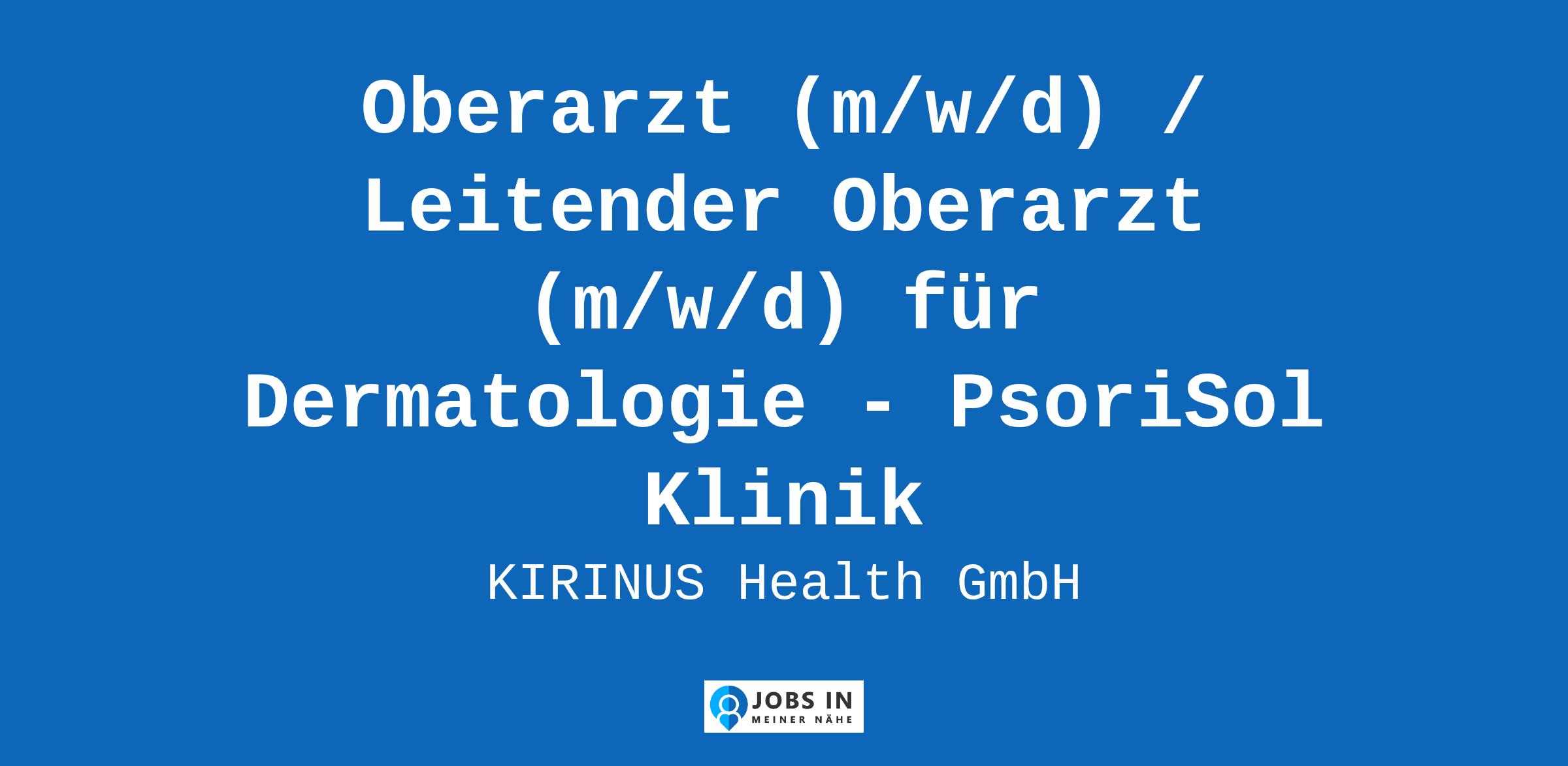 Oberarzt (m/w/d) / Leitender Oberarzt (m/w/d) für Dermatologie - PsoriSol Klinik