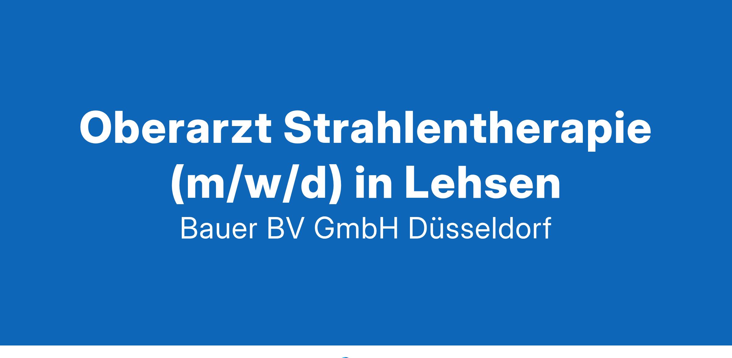 Anstellungsart(en): VollzeitIhr neuer Arbeitsplatz:Akademisches Lehrkrankenhaus und Klinik der Maximalversorgung im Raum Wittenburg. Die Klinik für Strahlentherapie ist mit modernsten Geräten ausgestattet und bedient als Maximalversorger das gesamte Spektrum der modernen Radioonkologie.Ihre Vorteile:Moderne Klinik mit großem LeistungsspektrumVertretung eigner Schwerpunkte in der strahlentherapeutischen VersorgungAbwechslungsreiche TätigkeitMentoring der Weiterbildungsassistent:innenFreundliches und aufgeschlossenes TeamUnterstützung von WeiterbildungenAttraktive Vergütung sowie eine betriebliche AltersvorsorgeUnbefristete Anstellung in VollzeitIhr Profil:Facharzt für Strahlentherapie (m/w/d)Fachkunde im StrahlenschutzErfahrungen im Bereich ambulanter und stationärer strahlentherapeutischer TherapienInteresse an medizinischer Lehre und ForschungIhr Ansprechpartner:Bauer B+V Personalberatung
