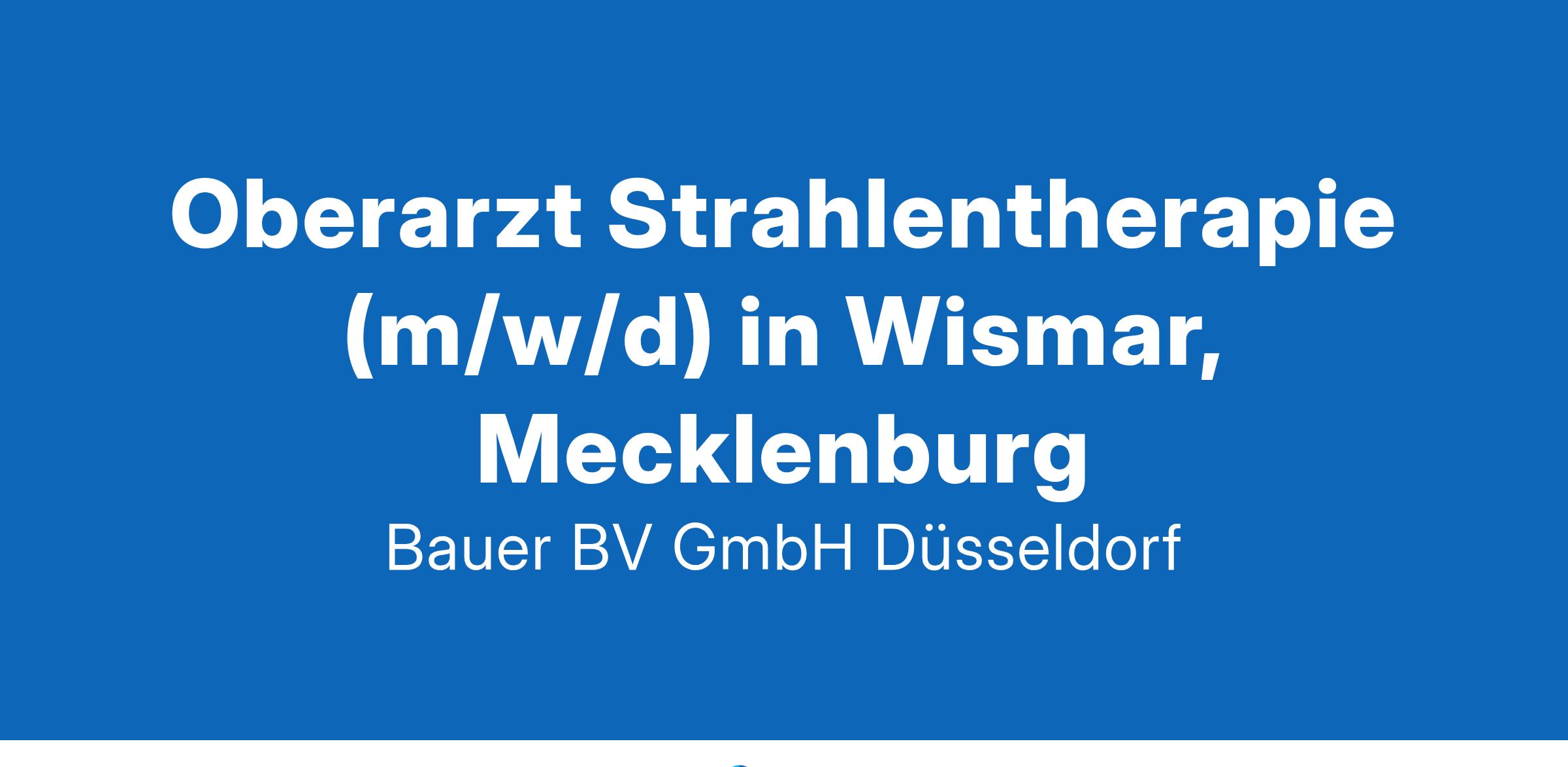 Anstellungsart(en): VollzeitIhr neuer Arbeitsplatz:Akademisches Lehrkrankenhaus und Klinik der Maximalversorgung im Raum Wismar. Die Klinik für Strahlentherapie ist mit modernsten Geräten ausgestattet und bedient als Maximalversorger das gesamte Spektrum der modernen Radioonkologie.Ihre Vorteile:Moderne Klinik mit großem LeistungsspektrumVertretung eigner Schwerpunkte in der strahlentherapeutischen VersorgungAbwechslungsreiche TätigkeitMentoring der Weiterbildungsassistent:innenFreundliches und aufgeschlossenes TeamUnterstützung von WeiterbildungenAttraktive Vergütung sowie eine betriebliche AltersvorsorgeUnbefristete Anstellung in VollzeitIhr Profil:Facharzt für Strahlentherapie (m/w/d)Fachkunde im StrahlenschutzErfahrungen im Bereich ambulanter und stationärer strahlentherapeutischer TherapienInteresse an medizinischer Lehre und ForschungIhr Ansprechpartner:Bauer B+V Personalberatung