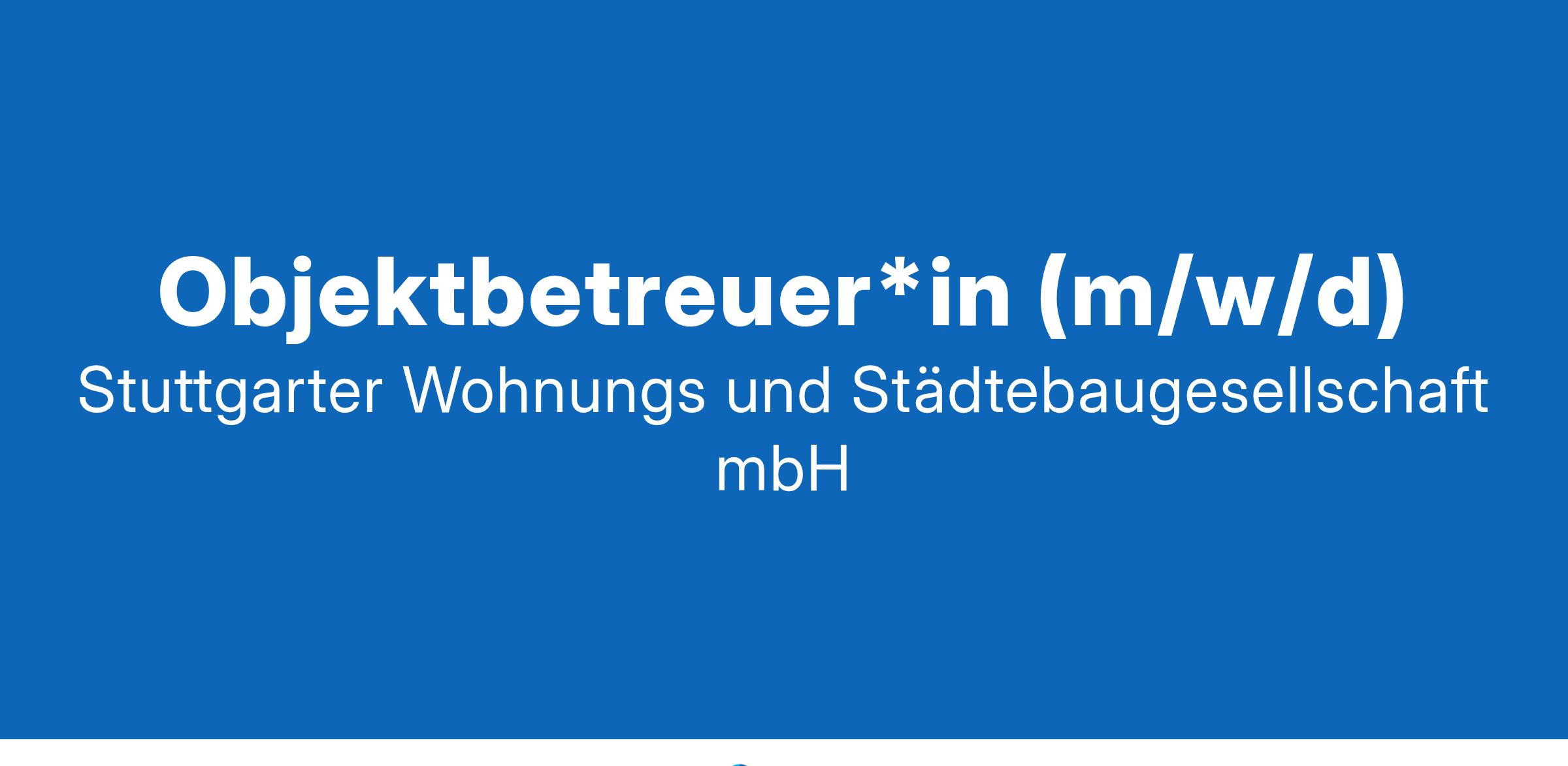 EinleitungStuttgarts Spitzenreiter in Sachen Wohnungsbau und Projektentwicklung, Heimatgeber für 50.000 Stuttgarter*innen, schlagkräftiger Akteur im Klimaschutz: Unsere wirtschaftliche Stärke und unsere Leistungskraft sind das Fundament unseres Erfolgs. Wir gestalten das Stuttgart von morgen - lebenswert, bezahlbar, klimafit!Wie Sie uns unterstützen: Sie sind erste/r Ansprechpartner*in für unsere Mieter*innen vor Ort Sie tragen durch Ihre sorgfältige Betreuung unserer Wohnanlagen wesentlich zu deren Erhalt bei Sie stellen durch Ihr aufmerksames und verantwortungsvolles Handeln die Sauberkeit und Ordnung in Ihren zu betreuenden Wohnanlagen sicher Siekontrollieren und dokumentieren die Arbeiten externer Dienstleister*innen (Pflege der Außenanlagen, Treppenhausreinigung, etc.) Sie führen Mietersprechstunden durch Sie koordinieren Kleinreparaturen und Instandhaltungsmaßnahmen Sie stellen durch Sicht- und Funktionskontrollen die Verkehrssicherheit innerhalb der Wohnanlagen sicher Sie steuern vor Ort den Mieterwechselprozess Was Sie mitbringen: Sie haben eine abgeschlossene Berufsausbildung und bringen erste Erfahrung in der Betreuung von Immobilien mit Sie verfügen über technisches und kaufmännisches Verständnis Service-, Kunden- und Kostenorientierung sind für Sie selbstverständlich, ebenso wie Engagement, Zuverlässigkeit und kommunikative Fähigkeiten Sie arbeiten verantwortungsbewusst und bringen sich gerne ein Sie haben Freude an der Arbeit mit Menschen Führerschein der Klasse B ist Voraussetzung Was wir bieten: Eigenverantwortung in einem vielseitigen Aufgabengebiet und interessante Entwicklungsperspektiven Freundliche und hilfsbereite Kolleg*innen mit einer wertschätzenden und angenehmen Arbeitsatmosphäre Umfangreiche persönliche und fachliche Förderung mit flexiblem Arbeitszeitmodell und der Möglichkeit zum mobilen Arbeiten Moderne und arbeitsergonomische Arbeitsplatzausstattung mit neuester Bürotechnologie Innovatives Gesundheitsmanagement mit zusätzlichen Mitarbeiterleistungen wie Fitnesskooperation und Jobrad-Leasing Ein attraktives Leistungs- und Gehaltspaket inkl. kostenfreiem Deutschlandticket für den ÖPNV Arbeitgeberfinanzierte betriebliche Altersvorsorge und Unfallschutz Möglichkeit zum Mieten einer Wohnung aus unserem Bestand in Stuttgart inkl. Mitarbeiter-Mietzuschuss KontaktStuttgarter Wohnungs- und