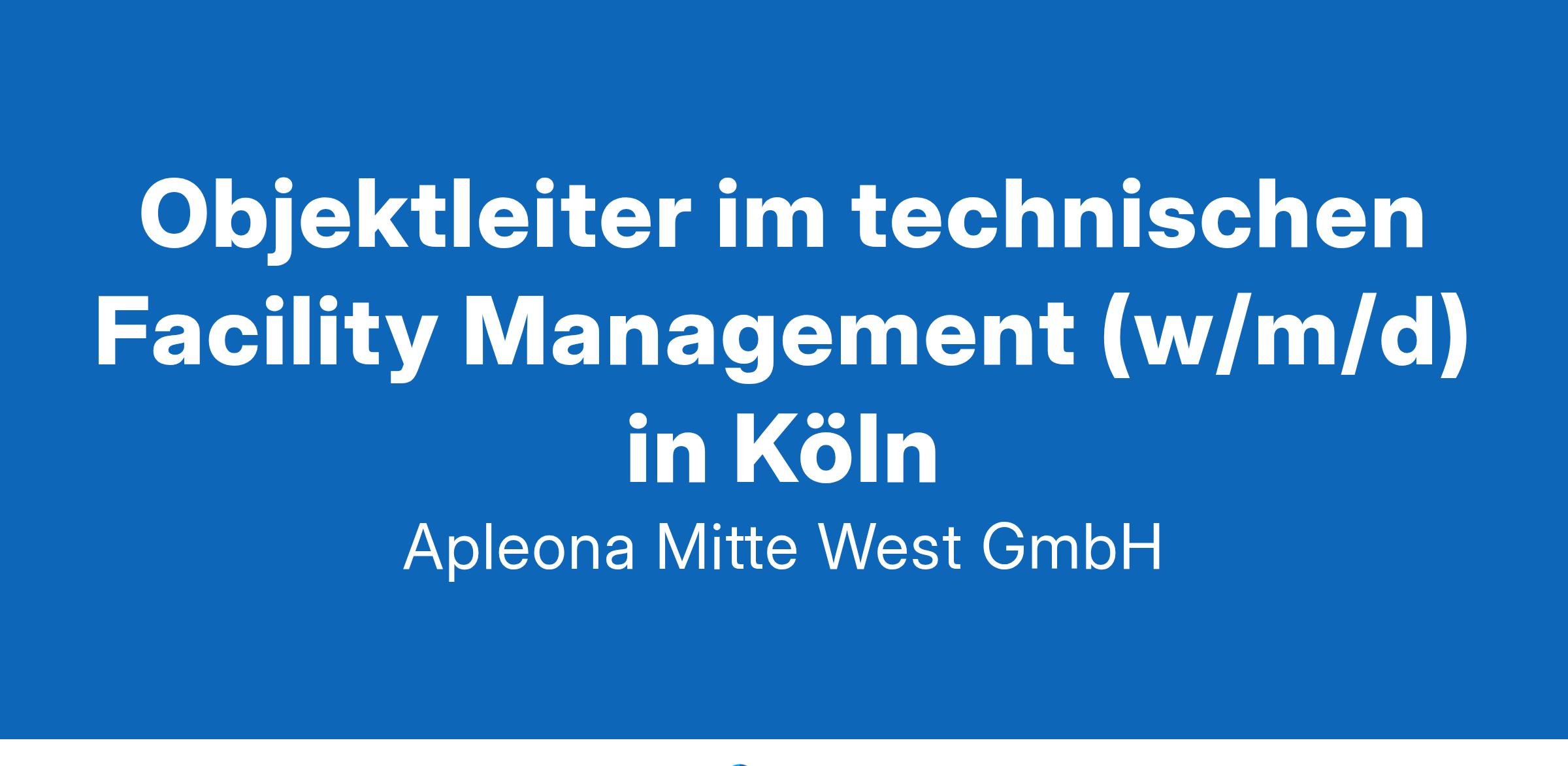 Verstärken Sie unser Team und gestalten Sie gemeinsam mit uns Ihre Zukunft! Wir – die **Apleona Mitte-West GmbH** - suchen für unseren Standort in 50933 **Köln** **Objektleiter im technischen Facility Management (w/m/d) in Köln - JobID 20501** **Darauf können Sie sich freuen:** * Unbefristeter Vollzeitvertrag mit einer 40h/Woche * 30 Tage Urlaub sowie Weihnachten und Silvester frei * Eine individuelle Zielvereinbarungsprämie * Hauseigener APLEONA-Tarifvertrag / IG BAU * Dienstwagen auch zur privaten Nutzung * Betriebliche Altersvorsorge zur Sicherung Ihrer Zukunft durch Entgeltumwandlung * Umfassendes Onboarding-Programm für einen optimalen Einstieg * Sonderkonditionen für renommierte Produkte und Dienstleistungen (inklusive Gympass und Corporate Benefits) sowie Prämien für Mitarbeiterempfehlungen * APLEONA - Weiterbildungsprogramme zur persönlichen und fachlichen Weiterentwicklung * Jobrad-Leasing für Ihr persönliches Training oder den Weg zur Arbeit **Das machen Sie bei uns:** * Zentraler Ansprechpartner für den Kunden vor Ort und verantwortlich für das Betreibermanagement * Verantwortlich für die Umsetzung von Wartungs- und Inspektionsarbeiten * Fachliche Führung des Teams vor Ort * Überwachung der gesetzlichen Prüffristen und Vorgaben sowie des Gewährleistungs-, Mängel- und Schadensmanagements * Die fristgerechte Beseitigung aller auftretenden Mängel und deren Freimeldung gegenüber dem Kunden/ggf. den Behörden * Kalkulation und Angebotserstellung von Regel- sowie Projektleistungen **Das wünschen wir uns von Ihnen:** * Idealerweise (Fach-)Hochschulabschluss im Bereich Ingenieurwesen, Facility Management, Betriebswirtschaft oder einem vergleichbaren Studiengang * Alternativ: erfolgreicher Abschluss zum Meister bzw. staatl. geprüften Techniker der Fachrichtungen Elektrotechnik, HKLS, Versorgungstechnik oder Kältetechnik * Berufserfahrung in vergleichbarer Position wünschenswert * Sicherer Umgang mit Microsoft 365-Anwendungen * Kommunikationsgeschick, Überzeugungskraft und Durchsetzungsvermögen * Unternehmerische Denk- und Handlungsweise sowie selbstständige und strukturierte Arbeitsweise **Interessiert? Werden Sie Teil unseres Teams!** Wir leben Vielfalt und Chancengleichheit. Wir freuen uns daher über alle qualifizierten Bewerbungen unabhängig von Geschlecht, ethnischer Herkunft, Religion, sexueller Orientierung, Alter oder etwaigen Beeinträchtigungen. **Bewerben Sie sich in nur wenigen Klicks über das Bewerbungsformular!** **Wir freuen uns auf Ihre Bewerbung!** **Ansprechpartner:** **Patrick Franke**