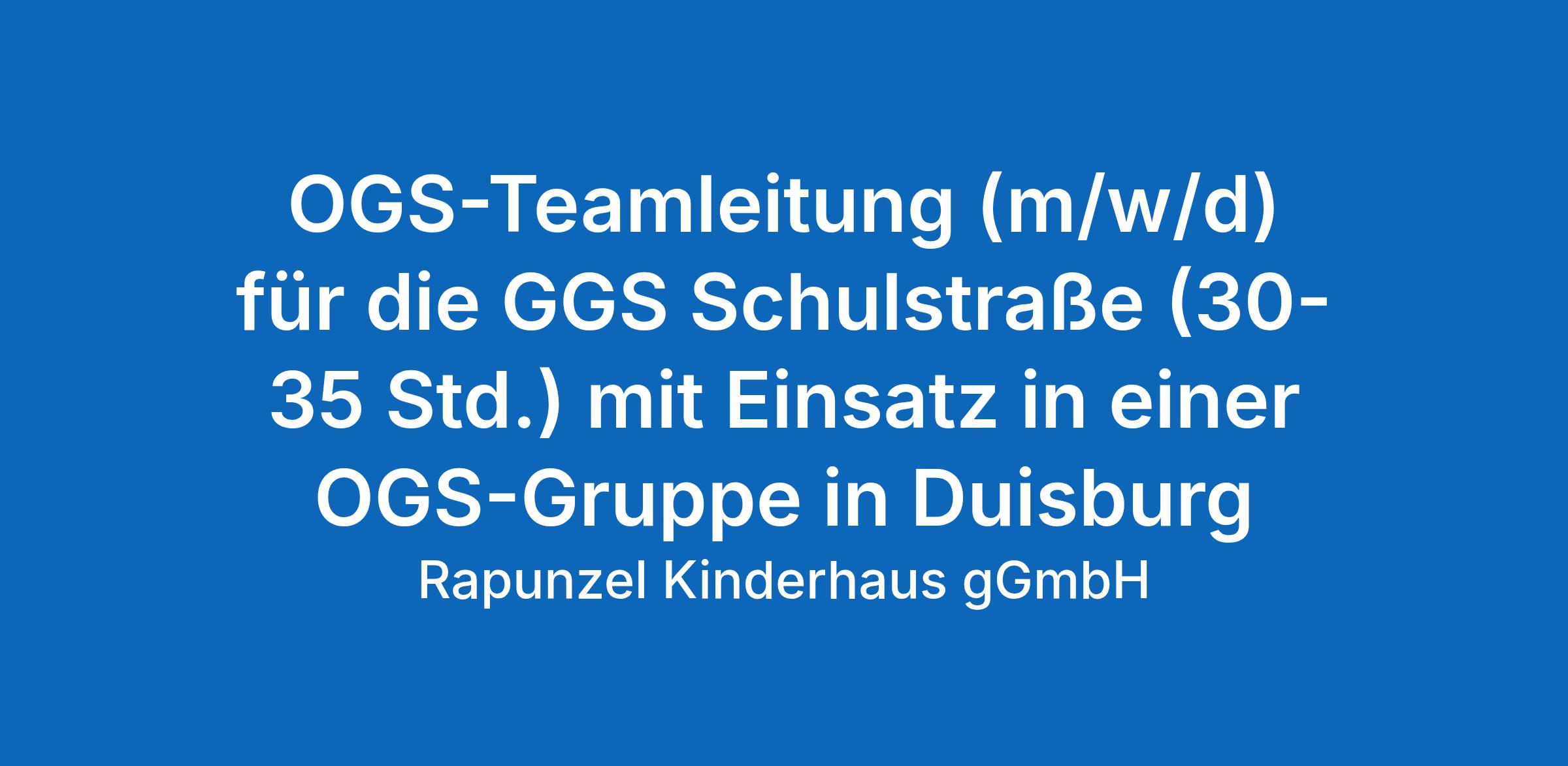 OGS-Teamleitung (m/w/d) für die GGS Schulstraße (30-35 Std.) mit Einsatz in einer OGS-Gruppe in Duisburg