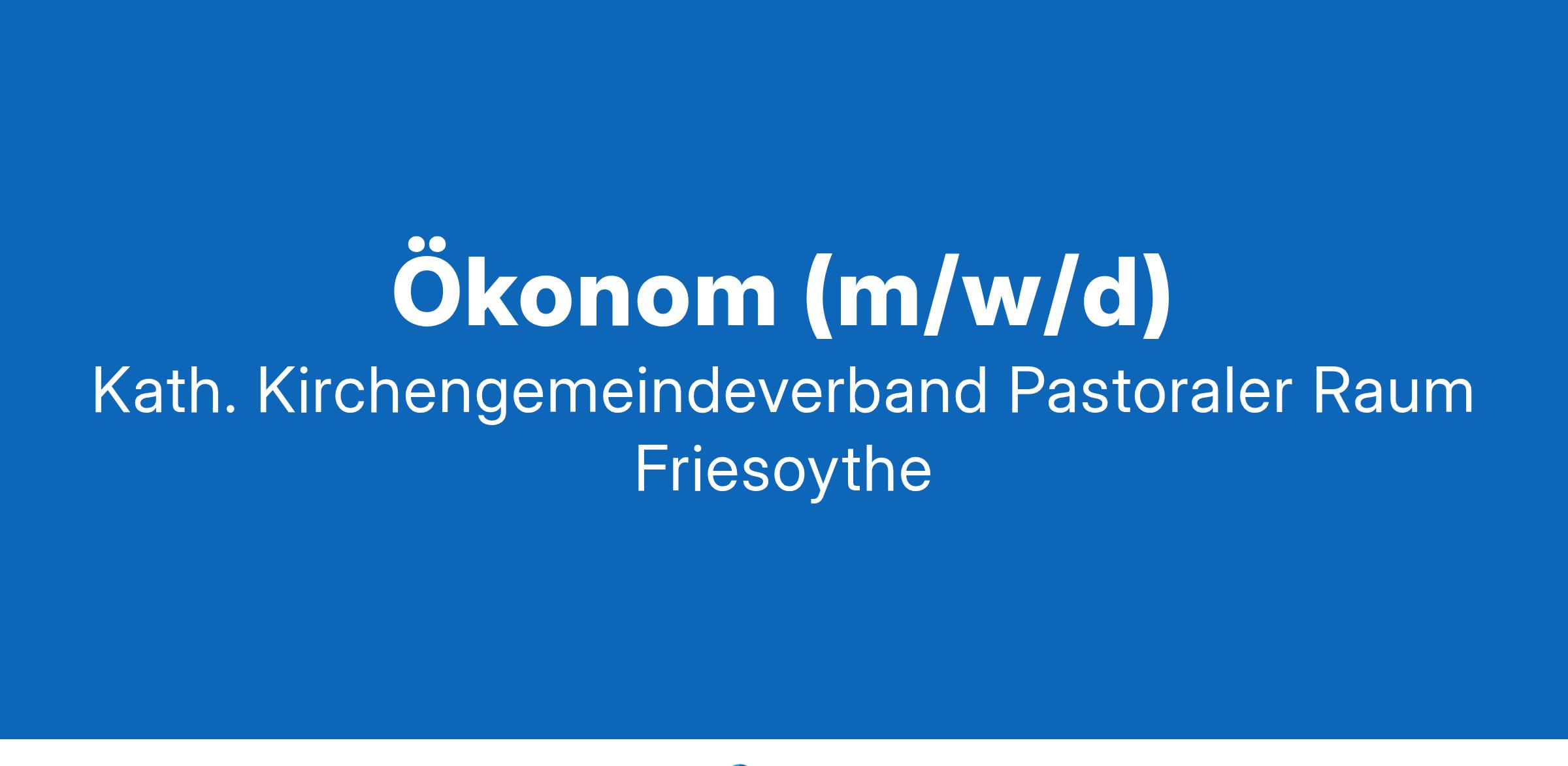 Ökonom (m/w/d) Ökonom (m/w/d) zur kaufmännischen Leitung und Betriebsführung des Katholischen Kirchengemeindeverbandes. Der Katholische Kirchengemeindeverband Pastoraler Raum Friesoythe sucht einen Ökonomen (m/w/d) für den Träger von 21 Kindertagesstätten und ca. 460 Mitarbeitenden. Die Anstellung erfolgt unbefristet in Vollzeit (39 Stunden). Die Vergütung richtet sich nach der AVO, vergleichbar TVöD-VKA. Bewerbungsmöglichkeiten und weitere Informationen unter www.kkol.de/stellen